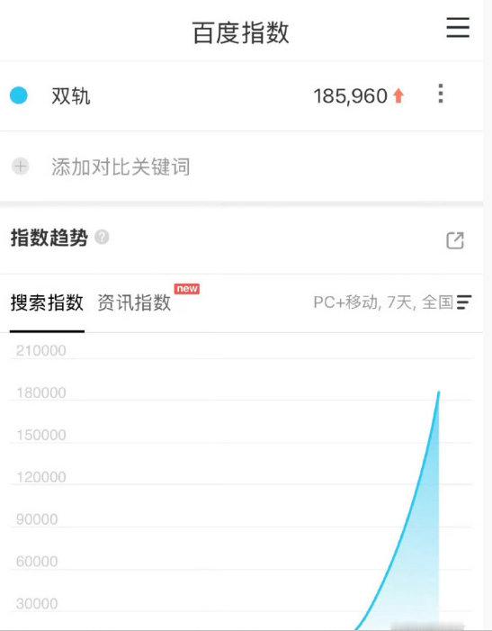 双轨次日百指 双轨百指翻了5倍 双轨次日百指,双轨百指翻了5倍,双轨次日百度指数达18万左右,首日百指约3.5万,较首日增长超过5倍,显示热度显著上升,继续期待和姜暮、靳朝故事里见面啦。 双轨