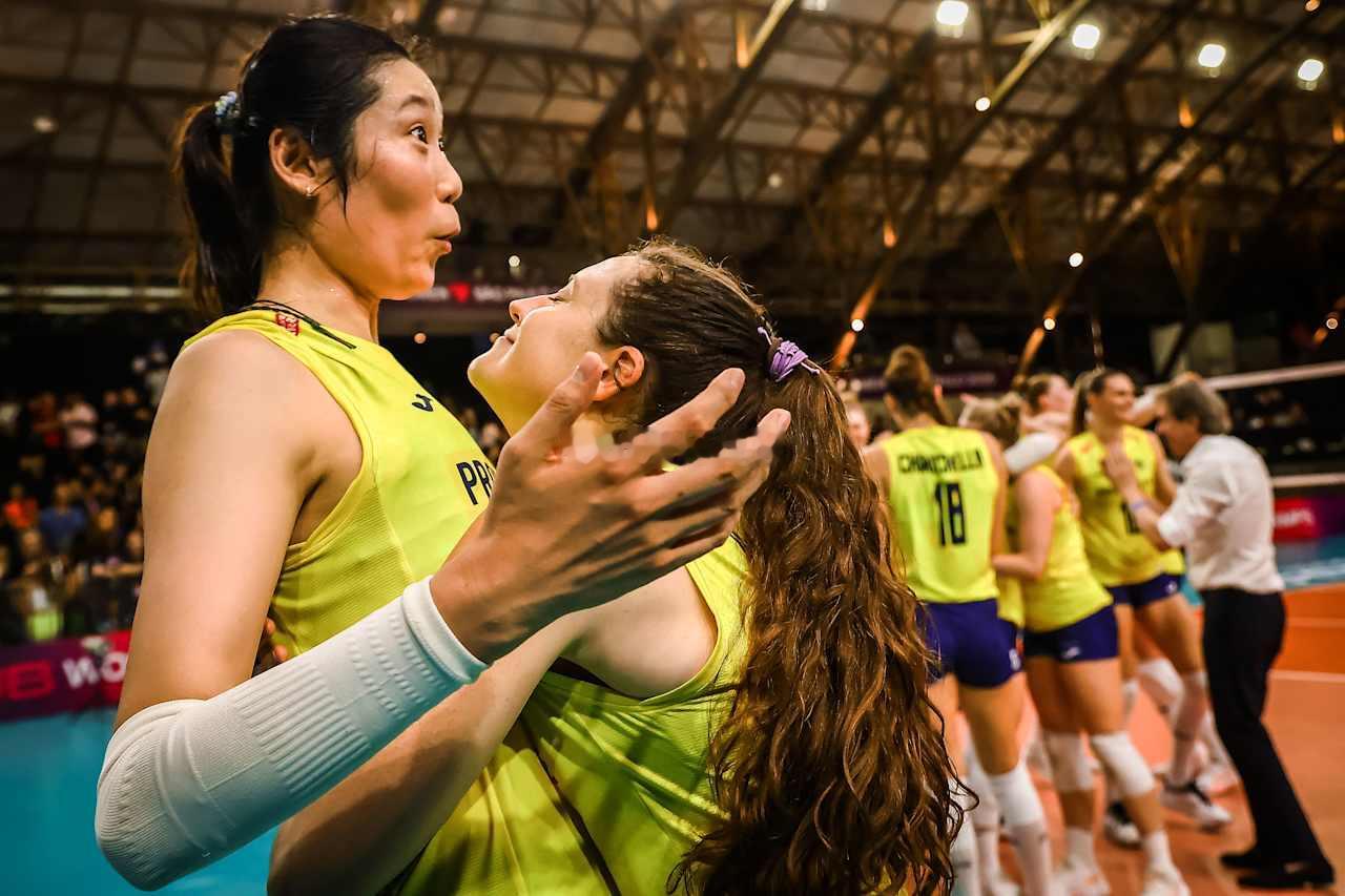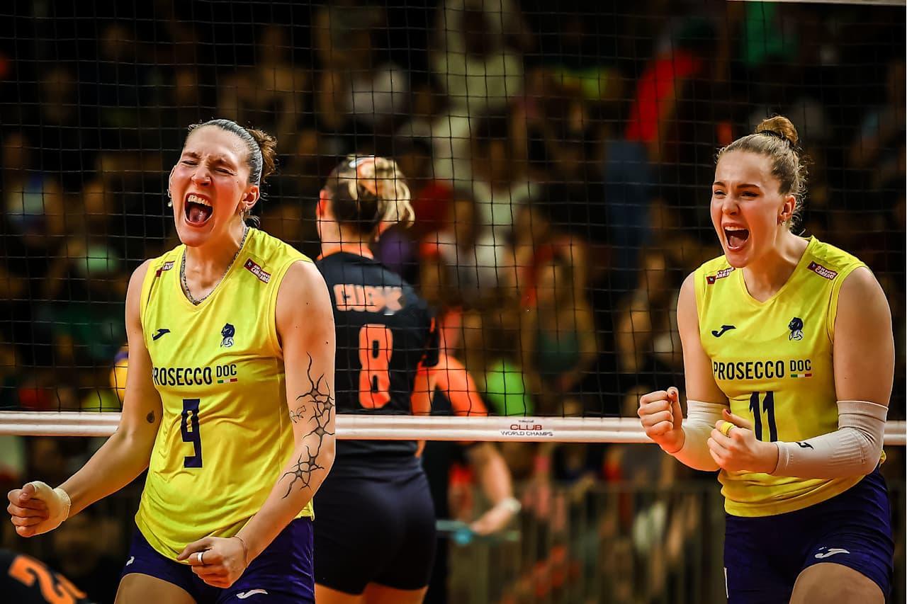 【科内战胜奥萨斯科 决赛战斯坎迪奇】2025年世界女排俱乐部锦标赛半决赛,卫冕冠军意大利科内利亚诺女排3-1(21-25 25-23 25-16 25-16)战胜巴西奥萨斯科女排,科内利亚诺晋级决赛将与斯坎迪奇争夺冠军。科内主攻朱婷13分(32扣13中3失误0被拦,14次一传4失误、到位率29%),加比18分(31扣16中3失误2被拦、1拦1发,32次一传1失误、到位率62%),奥萨斯科主攻贝尔德17分(35扣14中3失误1被拦、1拦,30次一传0失误、到位率60%)。清松带你看排球2025年女排世俱杯