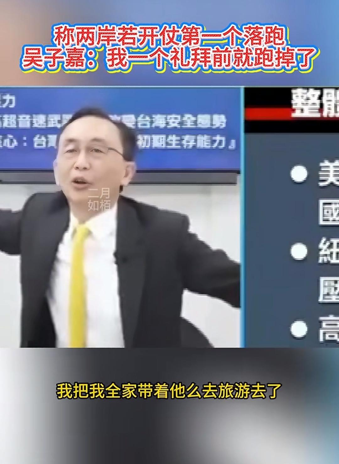 吴子嘉真是个大聪明,他说,两岸如果走火,他一定提前跑掉,他才不会为了台独卖命呢! 他说了,如果看情势不好,他会提前一个礼拜带着全家出去旅游,不跟着赖清德混了。 明明是一条死路,非要走到底,到时候就算死了也没人可怜,还要被十四亿人骂。 话说这个吴子嘉现在真是活明白了。他是《美丽岛电子报》董事长,以前可是民进党铁杆金主,现在全变了 。 据说,他曾在2009年和2015年两次赴大陆观看阅兵,从那以后,他立场就开始转变。他曾经三次提案冻结“台独”党纲均遭民进党搁置。2019年,因持续批评蔡英文施政,他被民进党开除党籍。后续他不仅为国民党人士站台,还揭露民进党工程、采购等弊案。2025年8月,他公开宣称“我是中国人”,明确表达对中国的身份认同,成为民进党眼中的“眼中钉”。 现在,吴子嘉经常发表批评民进党的言论。他知道,台独根本就是死路。