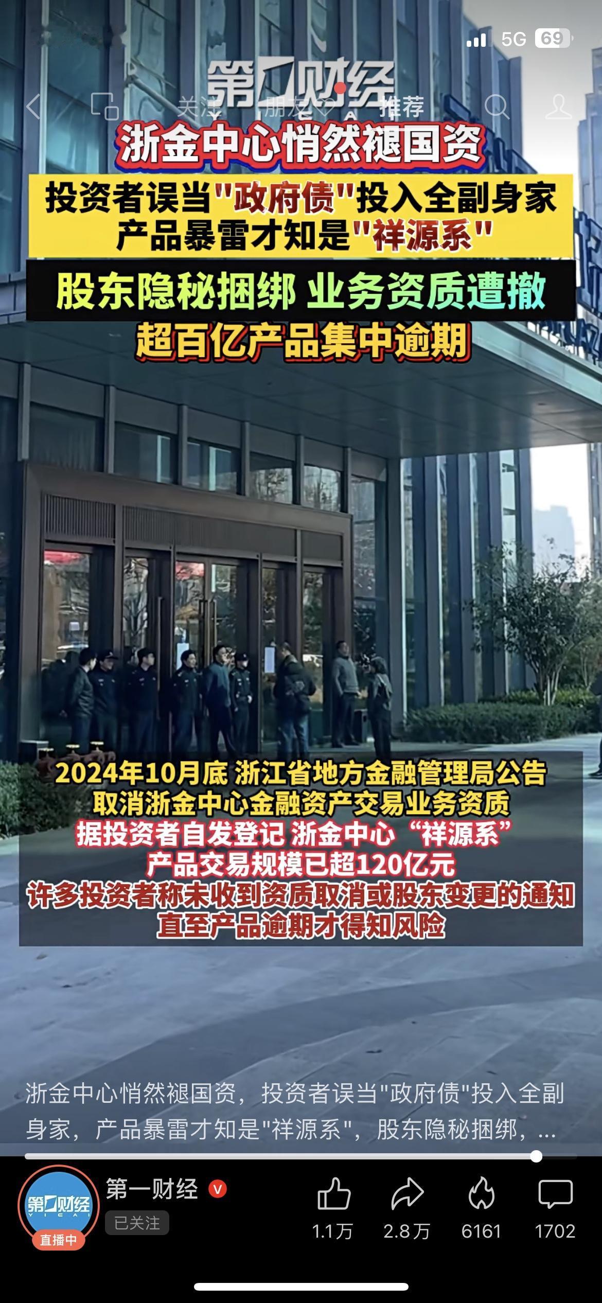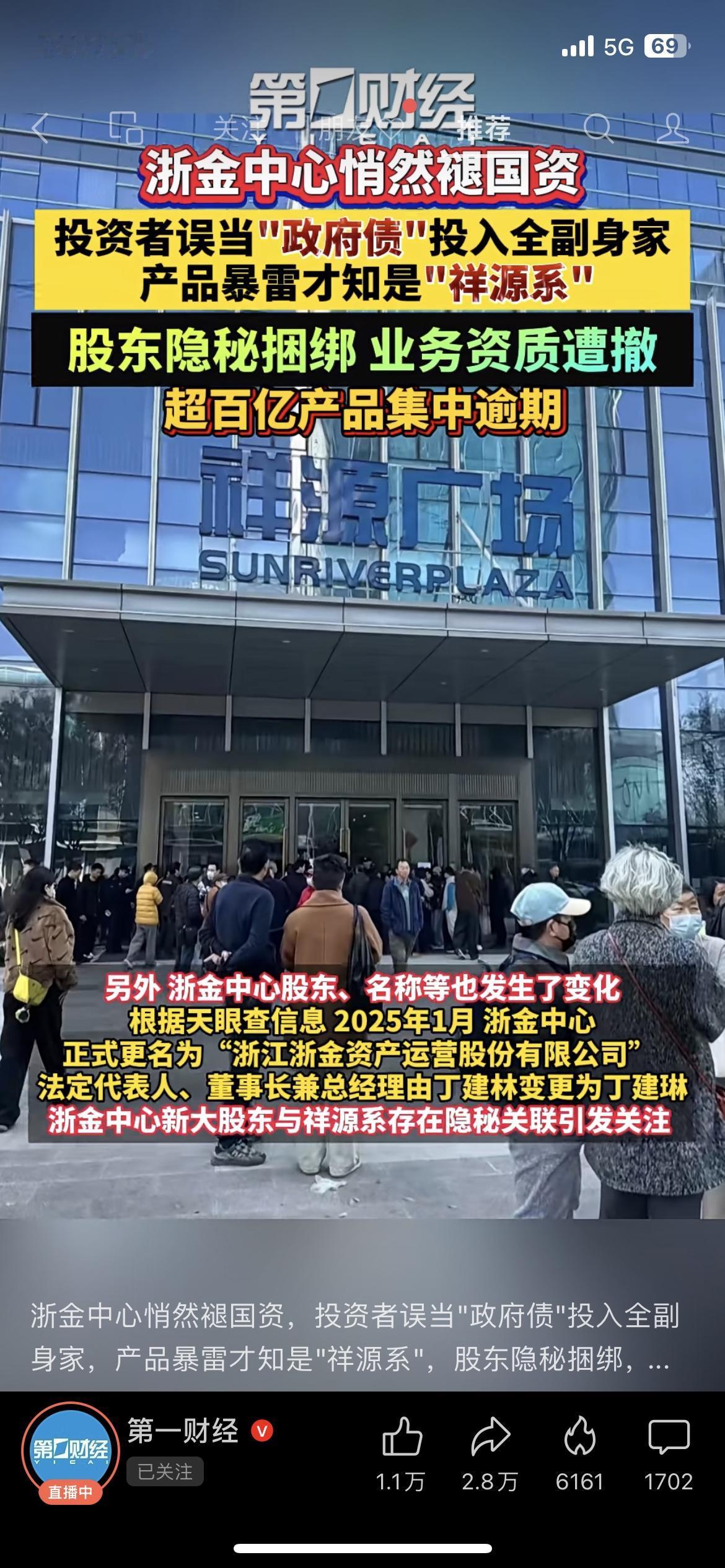 别踩坑!浙金中心产品暴雷,咱浙江投资者要留心这几点 在浙金中心投过资的朋友,权威渠道明确说其超百亿产品逾期了。 有投资者把产品当“政府债”投了百万,结果提现失败才知是祥源系。 遇到这种情况,先保留投资合同、转账记录,打12386金融热线维权,别慌。 咱浙江的投资者别轻信“国资背景”噱头,查资质要去金管局官网核实。 你投资时会先查平台资质吗?评论区唠唠~浙金中心
