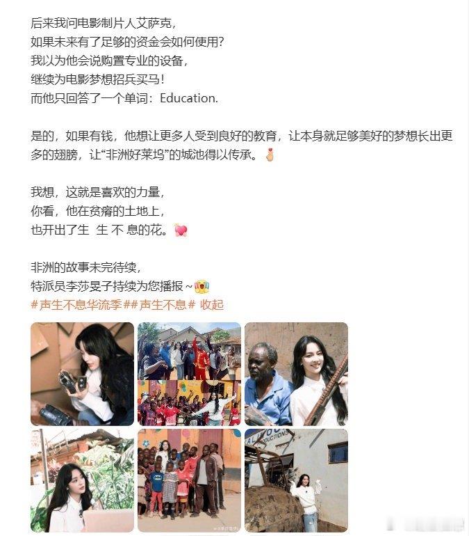 李莎旻子晒成龙合影为非洲儿童圆梦 电影人艾萨克讲述的故事令人动容:非洲的追梦人从成龙电影中汲取力量,他们来到中国学习功夫,并让这门东方艺术在非洲大陆生根发芽,这是文化传播最美的样子。