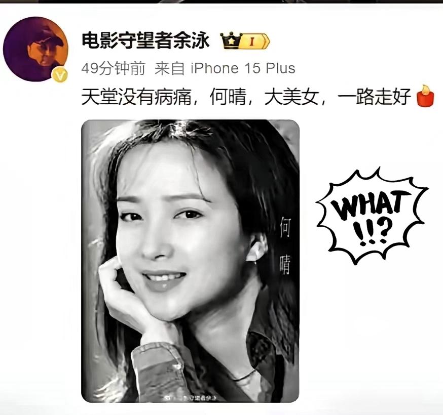 突然看到这样的消息我是真的不敢相信 刚从朱媛媛离世的惋惜中缓过来,12月14号就刷到何晴老师去世的消息,不敢相信,我还特地上网查了一下,所有的消息都说她真的去世了…… 作为唯一演遍四大名著的古典美人,她的秦可卿、小乔曾惊艳了多少人的青春。 2016年查出脑瘤后低调抗癌,近年曝光的近照明明面色红润、状态极好,谁能想到一场大雪竟带走了她,61岁的年纪实在太可惜。 最让人动容的是,她生病后始终不愿张扬,家属也只想小范围告知,就怕破坏大家心中那个美好的形象。 这大概就是真正的体面,把最好的一面留在荧幕,把伤痛自己扛。 生命从不是“状态好”就能预判的,那些留在时光里的经典角色,才是最长久的印记。 你第一次记住何晴,是哪个让你难忘的角色?