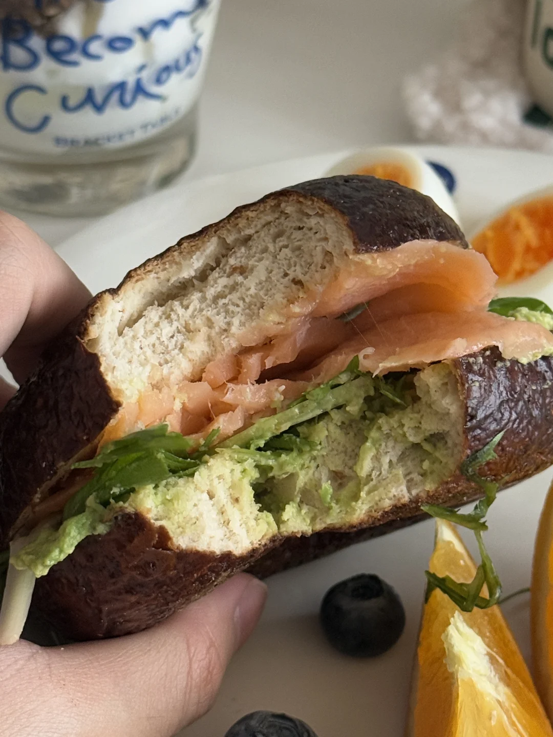 休息日的早午餐|烟熏三文鱼贝果三明治🥯