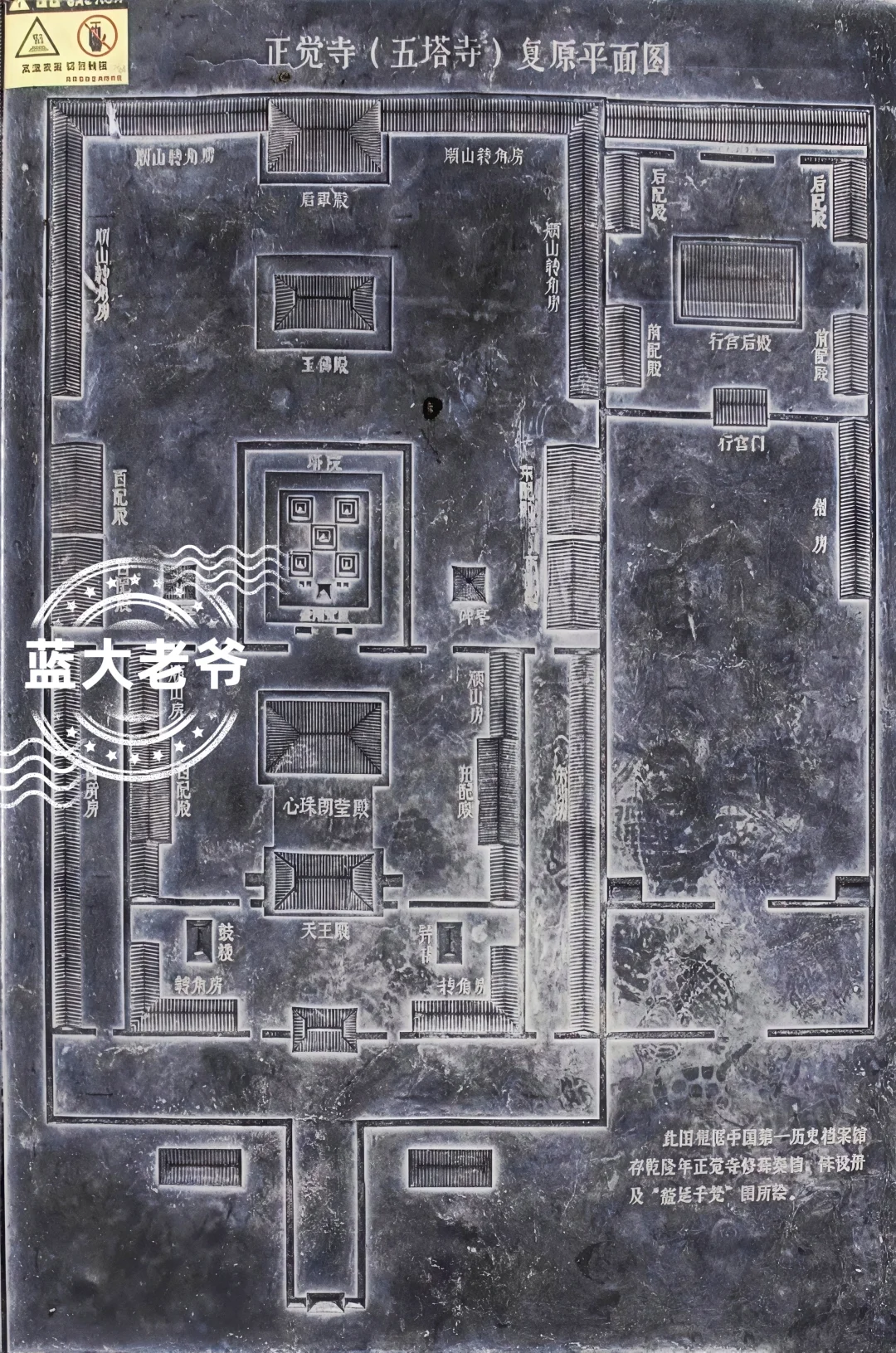 🌄日下旧闻考载:乐善园西三里许曰大正觉寺,大殿五楹,后为金刚宝塔,塔后殿五楹,塔院之东为行殿,正觉为避雍正圣讳,清乾隆两次给皇太后贺整寿,16年第一次重修改名, 26年二修,改建天王殿东西配殿转角房顺山房,塔台一座,宝塔五座,重檐亭一座,毗卢殿五间,殿易黄瓦。依记录和祝寿图册《胪欢荟景图》中釐延千梵所绘,五塔寺格局自南而北依次为三间牌楼、山门殿、钟鼓楼、天王殿、心珠朗莹大殿、塔院、东西二碑亭、五佛殿即毗卢殿和后罩殿,东为行宫院,重檐亭即塔上那座。