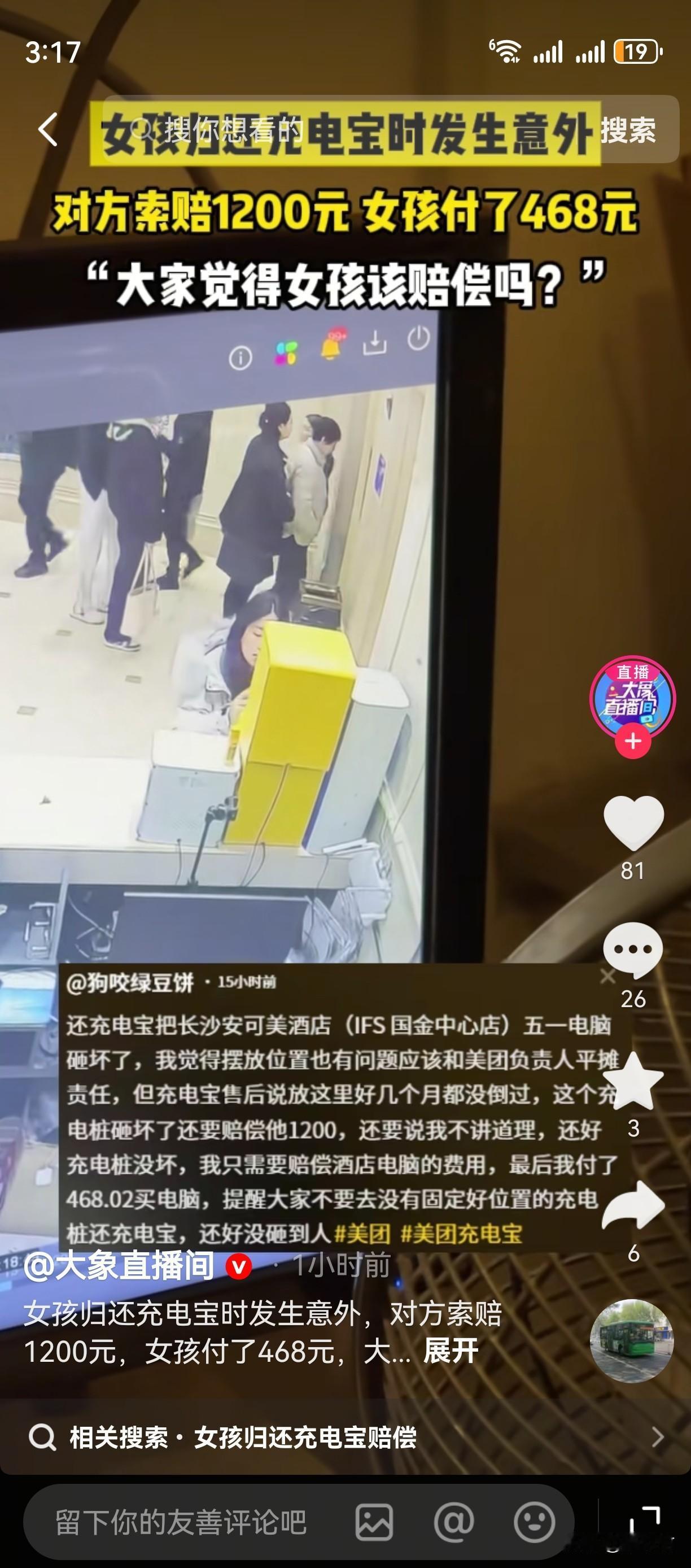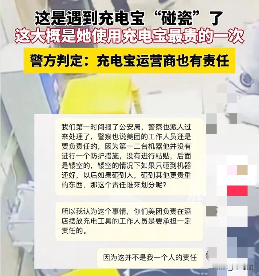 近日,湖南一女子在某酒店归还充电宝,不小心在过程中,把充电柜给推倒,顺带着把前台的电脑给砸落下来,这是被“碰瓷”了? 前台致电该充电宝的售后人员,对方称摆在这个位置几个月了,从来没有出过现这类的事情,肯定就是女子太用力,或者不得当的问题,才让充电宝掉落,本来还想追究她赔1200的充电柜,结果检查了一下没有问题,只让她赔了前台的电脑。 最后女子赔了468给对方电脑的费用。后续也报警了,监控显示早前这充电宝柜机就已经有了倾斜的风险,换谁来归还都有可能掉地上的危险。 此事很多人都抱不平,这明显商家的问题为什么让消费者买单,人家哪错了?就是正常力气推进充电宝进卡槽里,结果它自己“不争气”的掉了,怪谁呢?最后定责是充电宝摆放有问题,赔偿却是消费者,太不公平了。大家觉得这钱该女子赔偿吗?