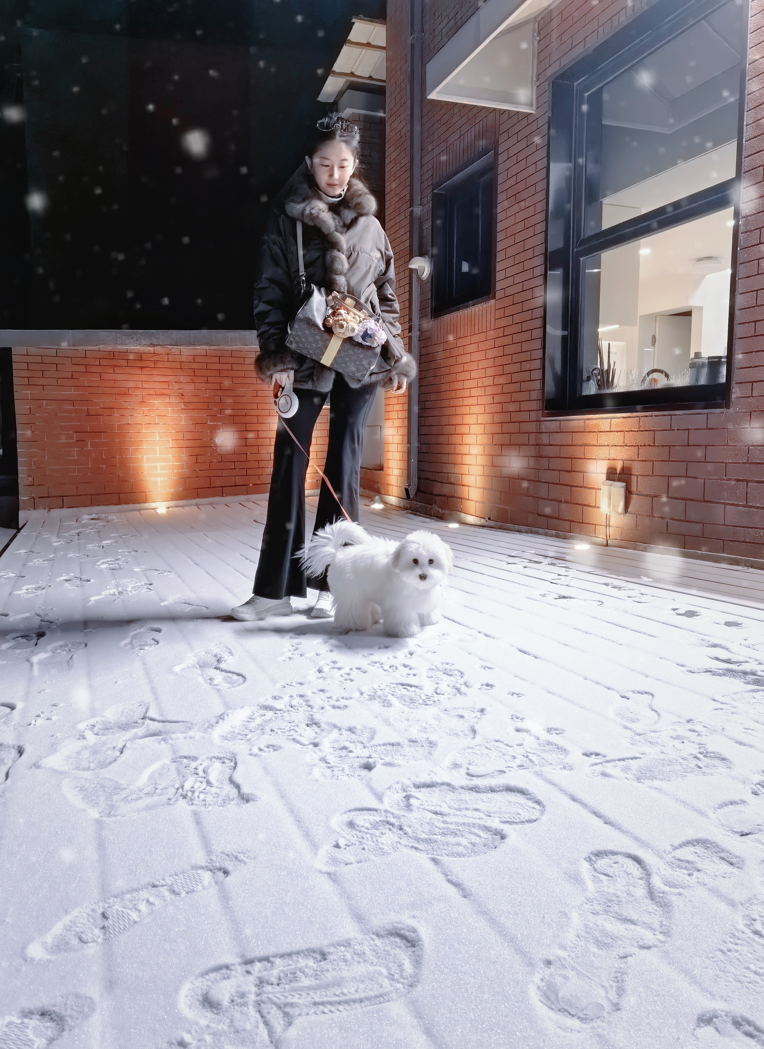 刘亦菲晒初雪哈哈合照老婆,玩雪玩狗也玩玩我啊 我也要做老婆的小狗,汪汪汪~汪汪汪~·