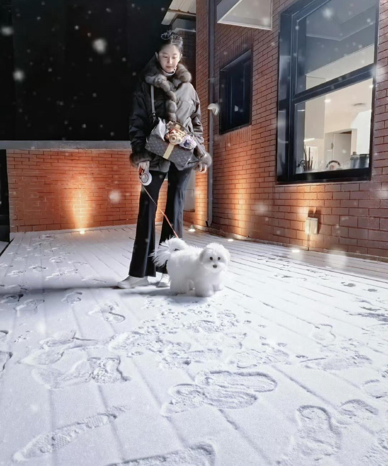 华人女演员刘亦菲分享自己初雪照片,小小的院子,大大的脚印,还有一只可爱的小白狗,不知道多少人向往这样的生活。 而且这个小狗看起来就非常幸福,不光被美女抱在怀里,而且还能上家里的沙发。 据我所知,生活中很多朋友养狗的时候,都不会让狗上沙发的。 从这一方面上讲,刘亦菲是真的喜欢小动物,把小动物当家人了。
