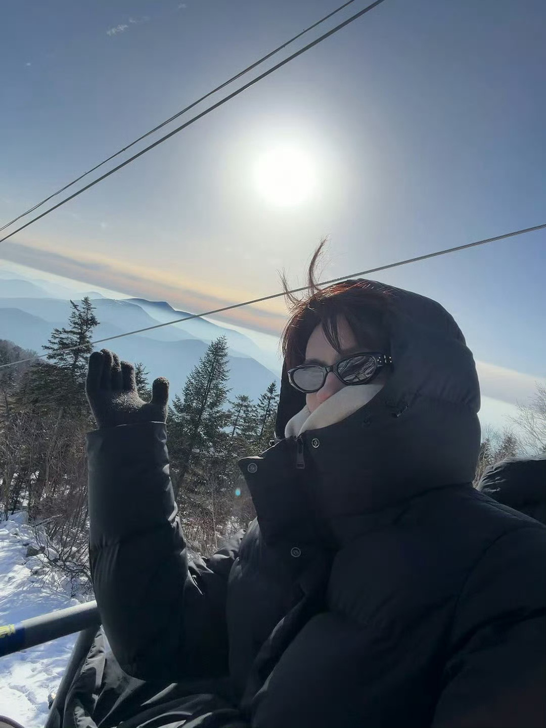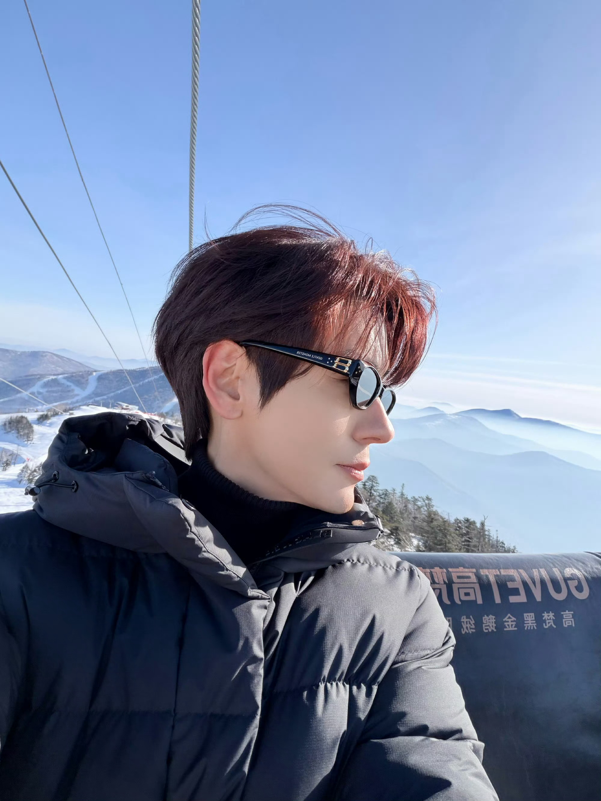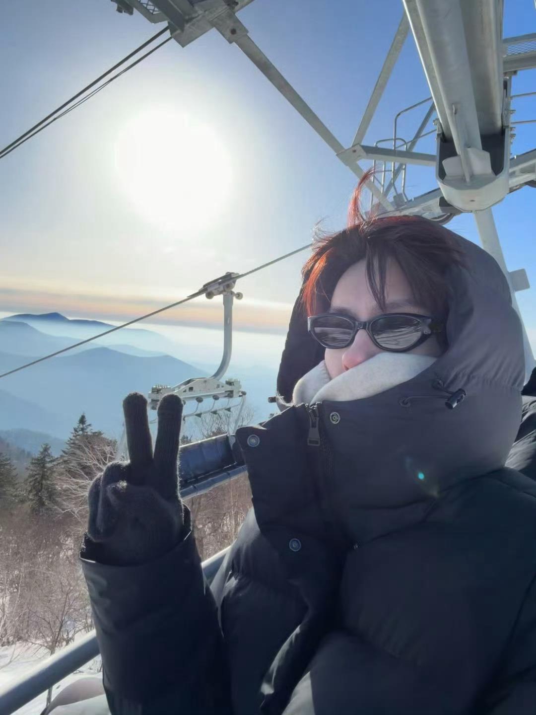 雪白的雪雪白的魏哲鸣!羡慕呢!也想体验体验冬天坐缆车