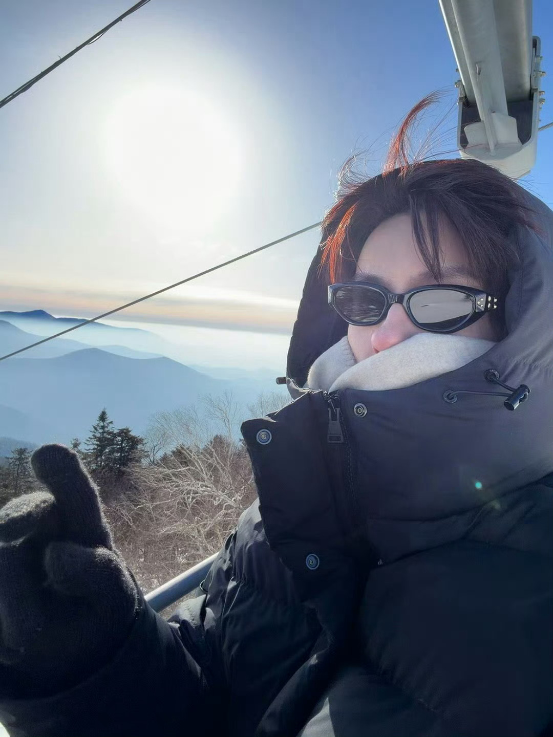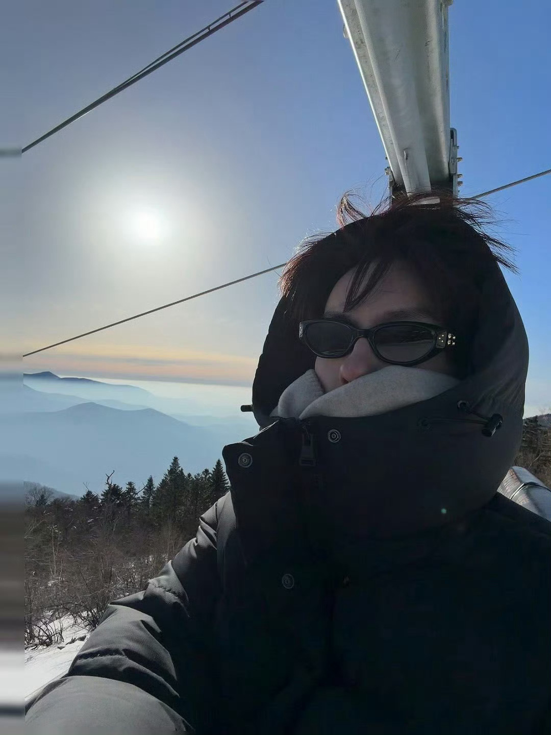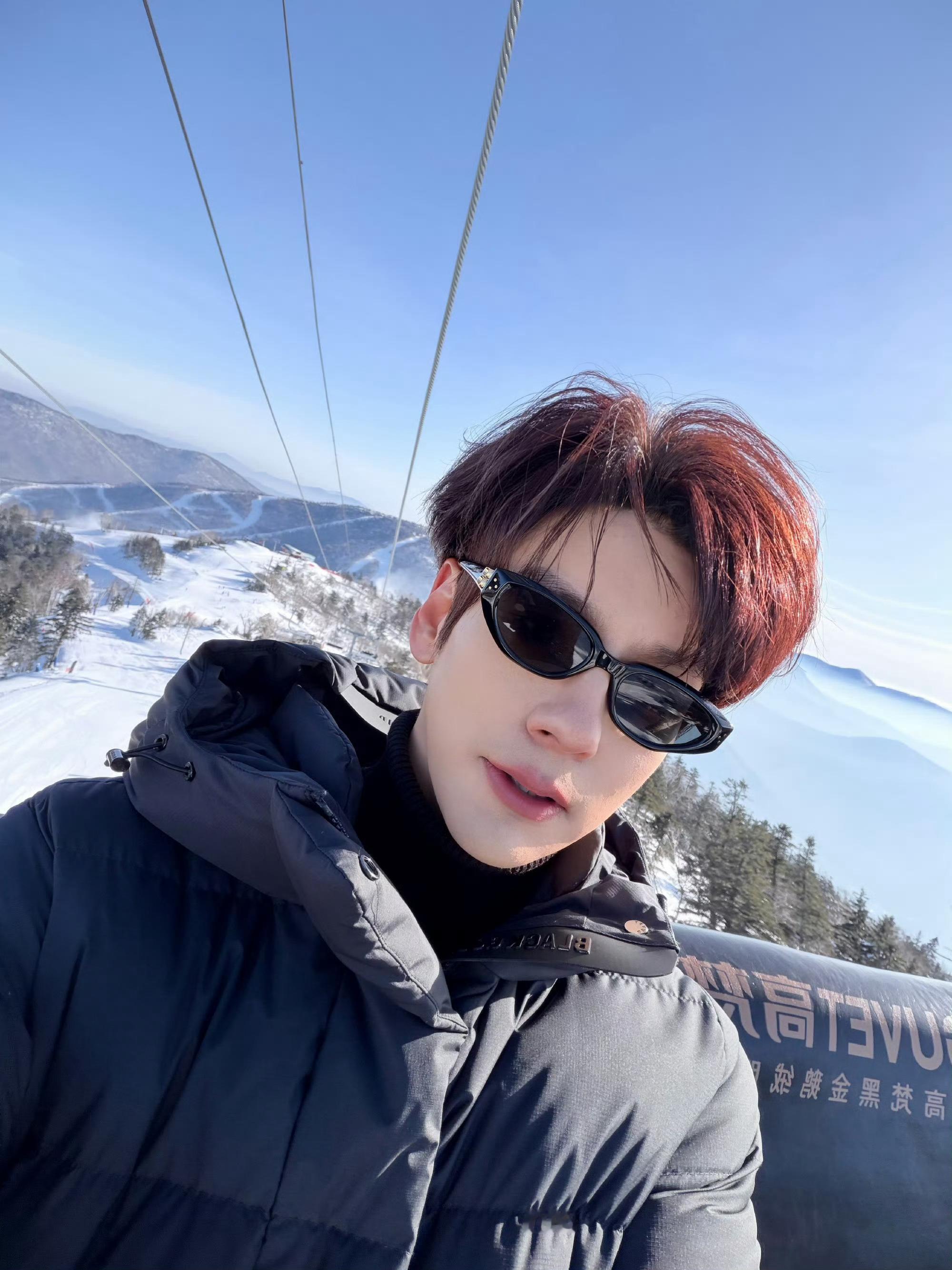 雪白的雪雪白的魏哲鸣!羡慕呢!也想体验体验冬天坐缆车