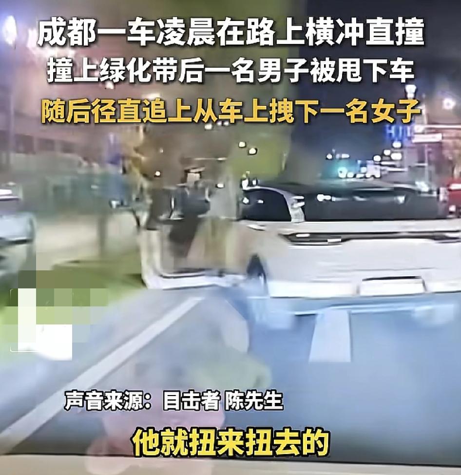 成都有网友发视频称夜间一路段一辆小车行驶过程中扭来扭去,过了几分钟,突然汽车冲向路边的绿化带,一名男子被甩下车,随后男子径直的冲上车去,把车上一名女性拽下车,随后女子淡定的离去。明显男女双方在车上发生了争执,男子很有可能被女子是抢夺了方向盘,但是这样在路上不顾他人安危,随意的妨碍其他车辆行驶。这种违法行为一定要严惩。