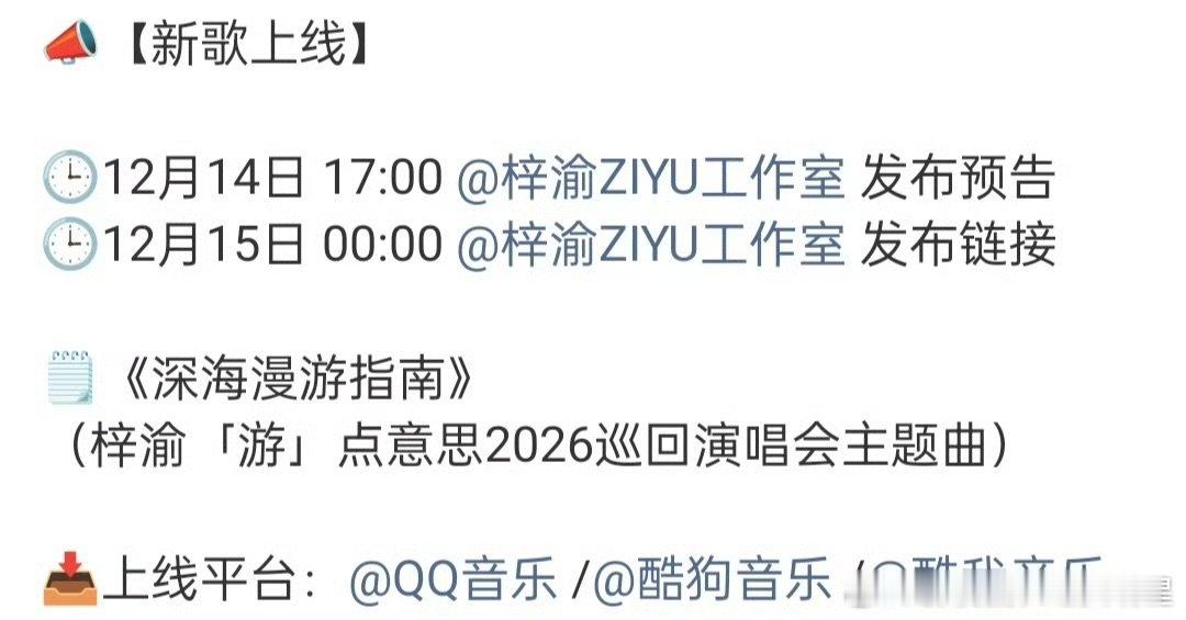 梓渝2026巡回演唱会主题曲梓渝深海漫游指南新歌预告梓渝《深海漫游指南》新歌预告游点意思2026巡回演唱会主题曲