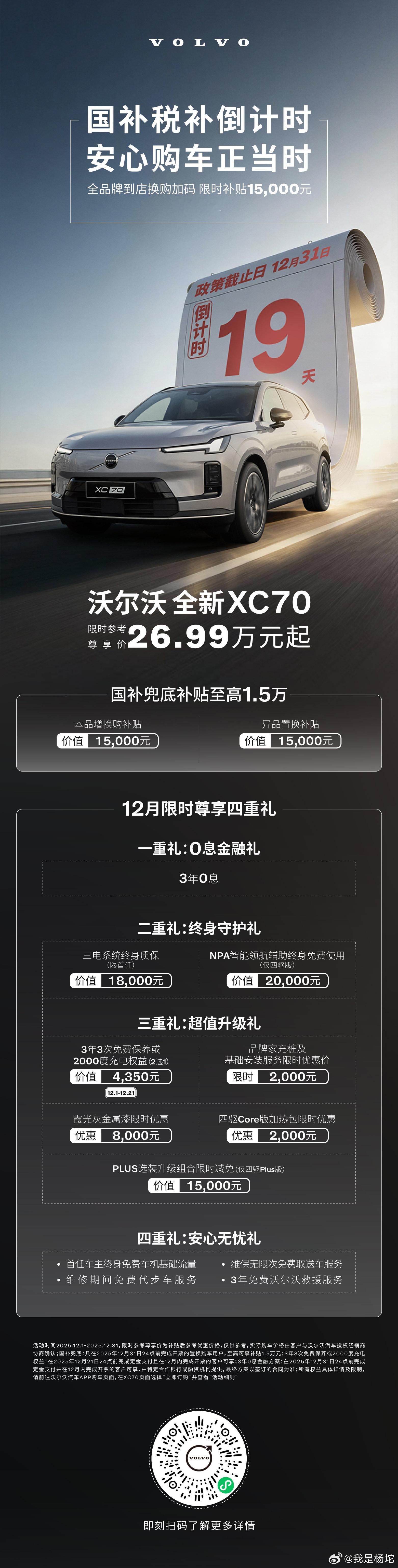 昨晚老罗直播都看了么?老罗说,选车,安全最重要,我非常赞同。冰箱彩电沙发,这些能看得见的无非是花钱堆料,安全才考验造车功底。沃尔沃XC70就是这么一台车,SMA超混架构,P1+P2+P4三电机与3DHT变速箱,有电没电都性能,关键是和XC90一样,都通过了64 km/h严苛对撞测试,A柱无变形、不起火、能开门,沃尔沃传统艺能了。现在买沃尔沃XC70,还有不限品牌的置换补贴,3年0息,终身质保等等政策,算下来挺划算的。如果你想要一台续航长,够安全,够豪华的插混SUV,那么XC70值得看看。罗永浩说豪华新能源就看沃尔沃XC70罗永浩带货沃尔沃全新XC70罗永浩称沃尔沃工业设计依旧在线