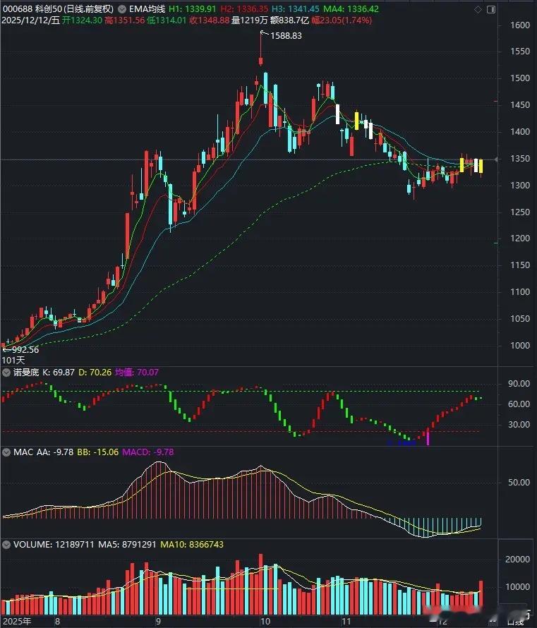 美股大跌,A股能否低开高走?美股之道指周四晚间大涨,纳指低开高走微跌,中国金龙指数也低开高走微跌。周五A股大盘开盘后惯性下跌,10点钟后开始回升,不仅反包了开盘半小时的跌幅,而且继续震荡上扬,还差一点就反包了昨日的中阴线。周四那根中阴线十分凶险,技术上出现了主跌浪迹象。不过,我们在小密圈里分析了,“这个利空的威力不大,不足以引发A股出现主跌浪”,那个下跌“只是虚惊一场,是一个短期冲击,应该很快就迎来修复”。周五A股出现修复,领涨的是科创50指数,它以1.74%的涨幅,远远高于其它宽基指数的表现。在技术上,它还出现了一个很鲜明的亮点:周四出现断头铡刀后,周五出现芙蓉出水反包。接下来,它有两种可能性,第一种是多空继续来回拉锯,股指横着走;第二种是向上突破最近5天形成的小平台。如果是后者,那就要开启新一轮第五浪上涨了。科创50大涨,半导体设备、科创芯片均表现不错。我看了一下半导体板块里的个股情况,涨幅前20名里,有16家科创公司,还有4家是创业板公司,主板公司涨幅普遍居后。我们选股的话,优先选择科创板公司;没有科创板交易权限,可以选择科创类的ETF。总体上,大盘周五惯性下跌后探底回升,化解了二次探底的可能性。科创50指数先于大盘调整,时间与空间都达标了,它出现了领先大盘启动第五浪上涨的迹象。刺激科创50出现上涨浪的契机,应该是上面窗口指导国内数据中心、云计算公司采用国产芯片,以此应对英伟达H200的倾销。…………周末重要消息:1、周五晚间,美股集体下跌,下跌的导火索是“博通销售展望未达预期”。博通跌超11%,甲骨文下跌4.47%,英伟达跌超3%。博通是做数据中心芯片的,甲骨文则是做数据库管理的,这两股大跌,会影响A股上的数据中心概念股。考验A股的时候又到了,明天能走出一个漂亮的低开高走吗?拭目以待。2、特朗普签署行政令在联邦层面统一人工智能监管规则。特朗普11日签署一项行政令,在联邦层面统一对人工智能领域的监管规则,限制各州各自制定规则。该行政令称,要想取得胜利,美国的人工智能企业必须能够在不受繁琐监管束缚的情况下自由地进行创新,但“过度的州级监管”阻碍了这一目标。这是在给人工智能松绑。3、中国经济年会:明年要扩大绿电应用,培育氢能、绿色燃料等新的增长点。韩文秀表示,明年是从能耗双控全面转向碳排放双控的第一年,要坚持“双碳”引领,推动全面绿色转型。隆基绿能以前赌氢能,错过了布局储能,这下有救了。4、传闻甲骨文部分用于OpenAI的数据中心完工时间,将从2027年推迟到2028年。甲骨文方面驳斥了这一说法,并指出数据中心不会延迟交付,所有重要的程序都在正轨上。5、芯原股份:终止购买芯来智融97%股权,拟联合投资人增资天遂芯愿并收购逐点半导体控制权。换对象了,换对象一般都是越换越好,不至于越换越差吧。6、中国光伏行业协会:“多晶硅产能整合收购平台”正式落地,实行“承债式收购+弹性封存压产能”的双轨模式运行。赶紧上增资协议吧,刚注册的30亿元不够塞牙缝。