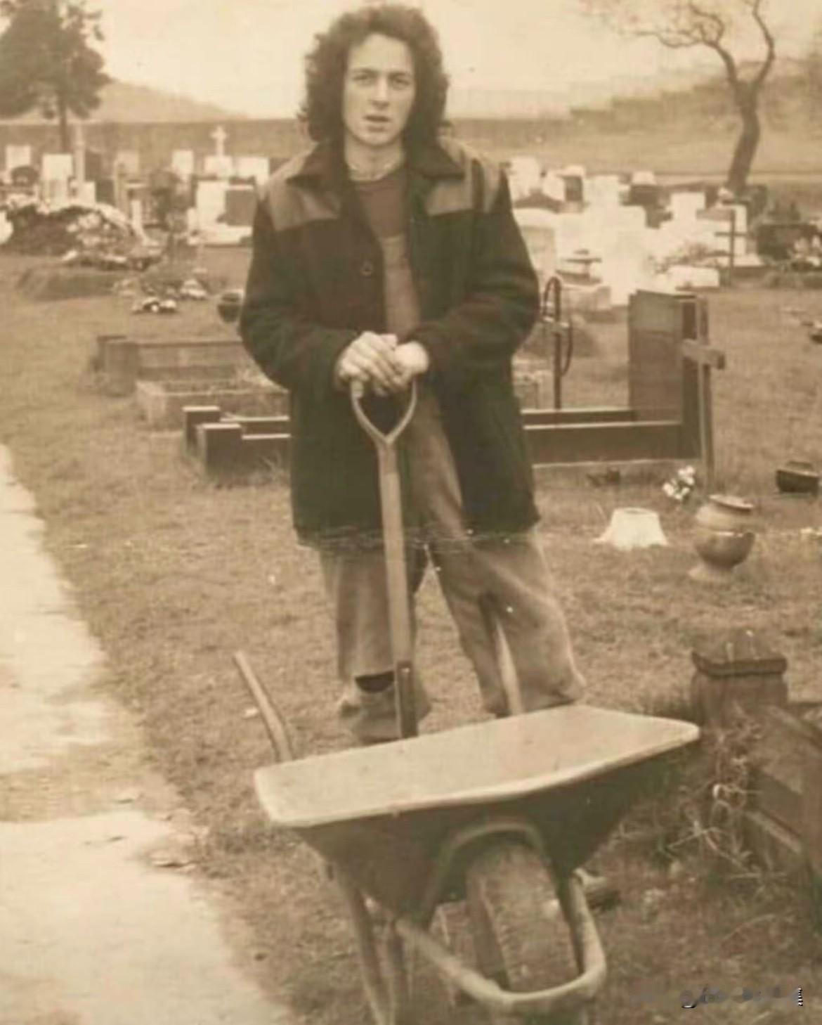 1973年,Joe Strummer(乔·斯特拉莫)在未成立乐队之前,在南威尔士从事过墓地挖掘工作的老照片。1974年,Joe Strummer回到伦敦,组建了节奏蓝调乐队101ers,这是他音乐生涯的重要转折点。1976年,在观看了Sex Pistols(性手枪)乐队的演出后,他深受震撼,毅然离开101ers,和朋友组建了传奇朋克乐队The Clash,成为英国朋克摇滚的代表,对全球摇滚乐产生了深远影响。