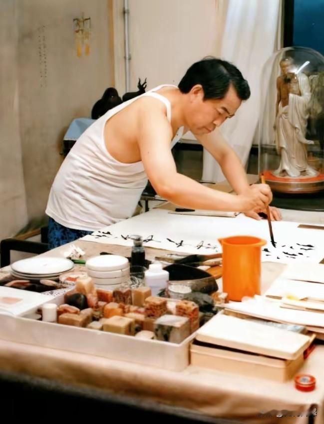 范曾先生年轻时挥毫写字,看起来非常的潇洒,那时候的他,身材还没有发福,正是年富力强的好时候,记得在上个世纪80年代的时候,范曾先生的书画就已经名扬天下了,从出名到现在,火了四五十年,这对一个艺术家来说,也是一件很不容易的事情!