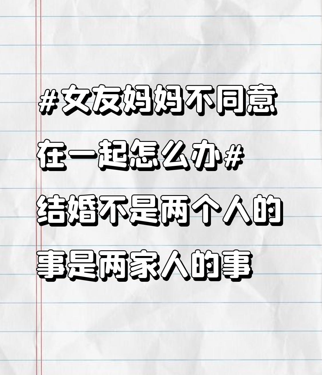 结婚确实不是两个人的事儿,是两家人的事。要是女友妈妈不同意你们在一起,还挺闹心的。我有个朋友就遇到过这情况,女友妈妈觉得他工作不稳定。他没灰心,一边努力在工作上做出成绩,一边经常去女友家帮忙,陪阿姨聊天,过节还精心准备礼物。慢慢地,阿姨看到了他的上进心和诚意,态度就转变了。所以啊,先搞清楚阿姨不同意的原因,然后对症下药。要是因为经济问题,就努力赚钱;要是对你性格有意见,就尽量展现好的一面。用行动去证明你能给女友幸福,说不定阿姨的态度就会软化。 路遥知马力,日久见人心