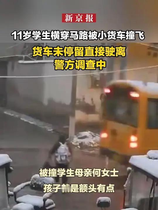 凌晨上学路突发惊魂事故!11岁学生被撞飞,司机肇事逃逸,必须严惩! (个人观点仅供参考,无任何不良引导) 清晨六点的街头,本是孩子奔赴校园的美好时刻,安徽宿州却发生了一幕令人揪心的惨剧,实在让人愤怒又心疼! 12月13日清晨6点左右,一名11岁的学生在回家途中横穿马路时,突然被一辆行驶中的小货车狠狠撞飞,身体重重落地,现场情况十分危急。万幸的是,路过的群众及时发现,立刻拨打了急救电话和报警电话,还在现场守护着受伤的孩子,避免他受到二次伤害,随后孩子被紧急送往医院救治,目前伤情还未对外公布,真心希望孩子能平安无事。 最让人无法接受的是,肇事司机撞人后,竟然没有丝毫停留,既没有下车查看孩子的情况,也没有履行报警救助的义务,直接驾车逃离了现场,这种漠视生命、逃避责任的行为,简直突破了道德和法律的底线,难怪会引发全网公愤! 根据交通法规,不管事故责任在谁,肇事司机都必须第一时间停车救助伤者、保护现场,逃逸不仅会加重法律责任,还可能耽误伤者的最佳救治时机。目前当地交警已经全力展开侦查,通过调取监控、排查路段、走访目击者等方式追查肇事司机,相信很快就能将其抓获,依法严惩,还孩子和家属一个公道。 这起事故也给所有人敲响了警钟,家长一定要加强对孩子的交通安全教育,让孩子养成遵守规则、谨慎过马路的习惯;司机朋友们开车时务必集中注意力,经过路口、学校周边要减速慢行,牢记安全第一。生命只有一次,容不得半点疏忽,更不能逃避责任,希望这样的悲剧再也不要发生! 图片素材来自网络,无任何不良引导。
