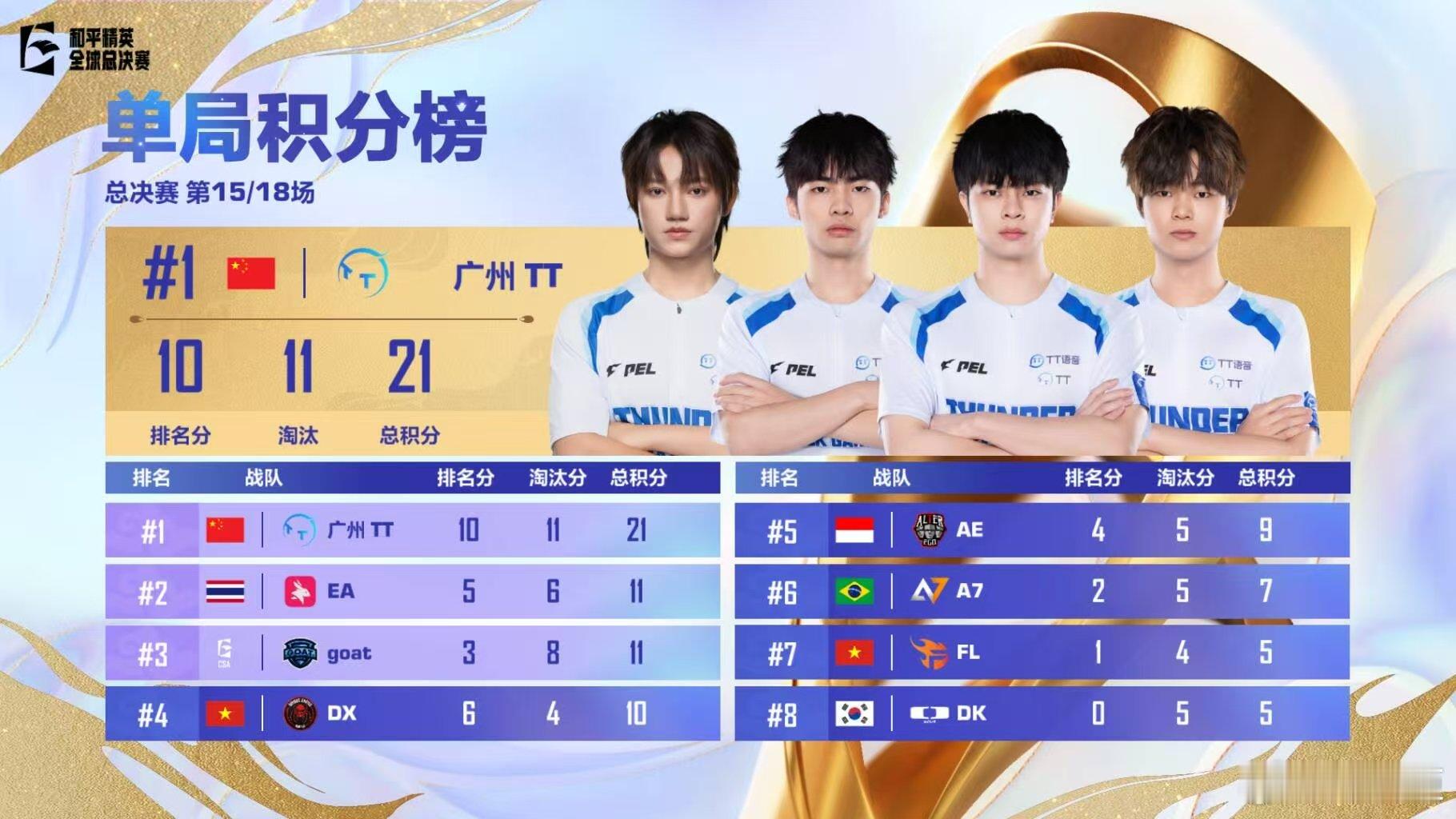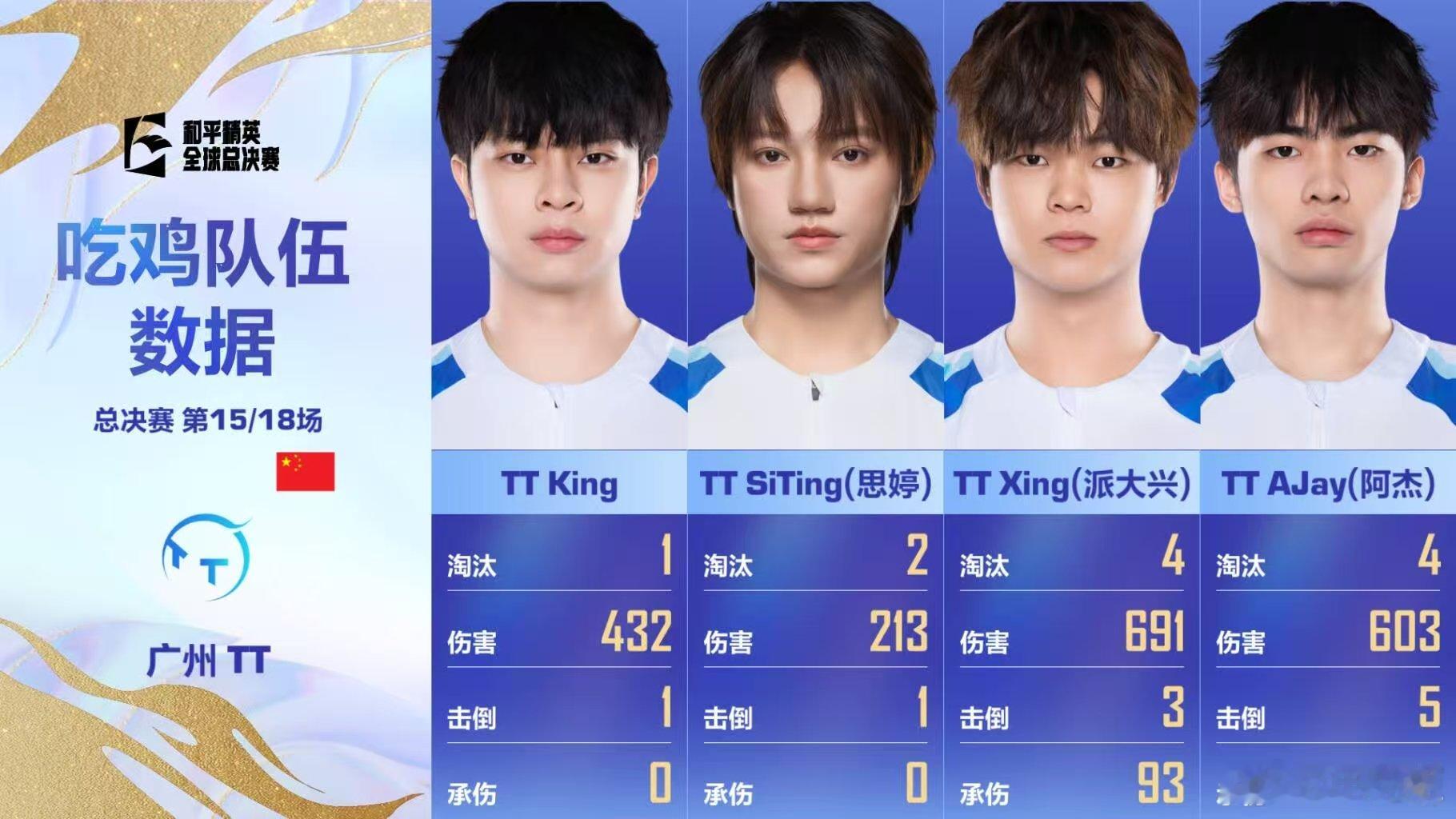 决赛终章将近,状态已彻底点燃!期待你们带着这股势头,向最高领奖台发起最后冲击!TT世界赛决赛吃鸡