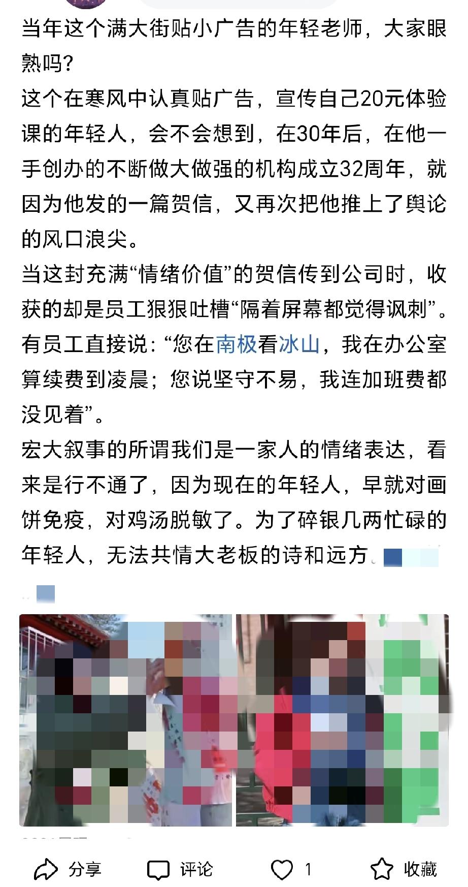 我就一个今日头条十八线的小博主,粉丝也就几千,就被某大机构举报我写的内容,关键这篇微头条阅读量才40多,那我不能提贵老大名讳,以后就要用“铁公鸡”、“小买卖人”来代替?发贵老大图片就用马赛克代替? 之前罗永浩骂贵机构和贵老大,我还无感,这次真的让我觉得贵机构和贵老大真的毁路人缘。作为贵甄选的曾经用户,我也再也不会买了,也再也不敢提贵机构和贵老大的名讳,我错了罗永浩