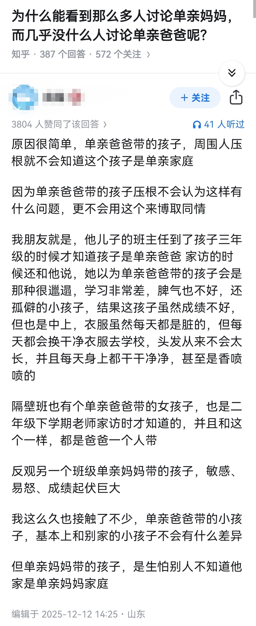为什么能看到那么多人讨论单亲妈妈,而几乎没什么人讨论单亲爸爸呢?
