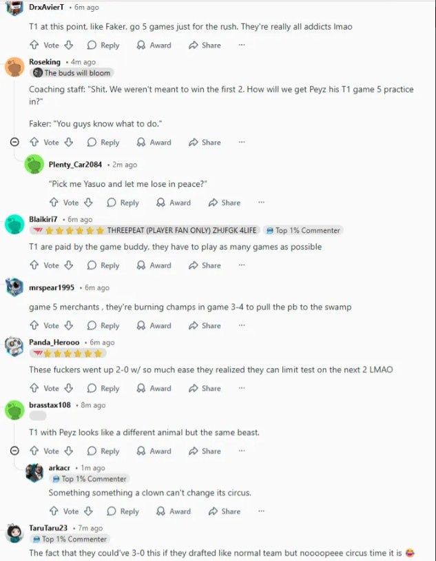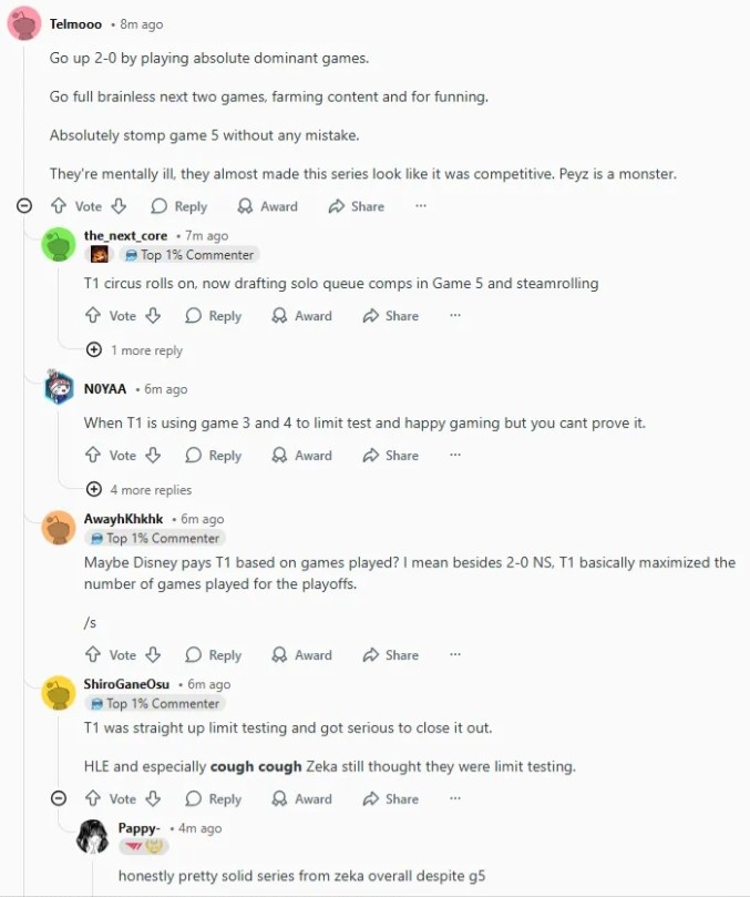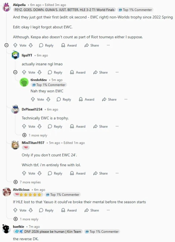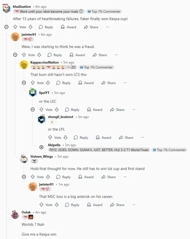 Reddit热议T1夺冠:他们拿到了22年春季赛以来第二个非世界赛冠军