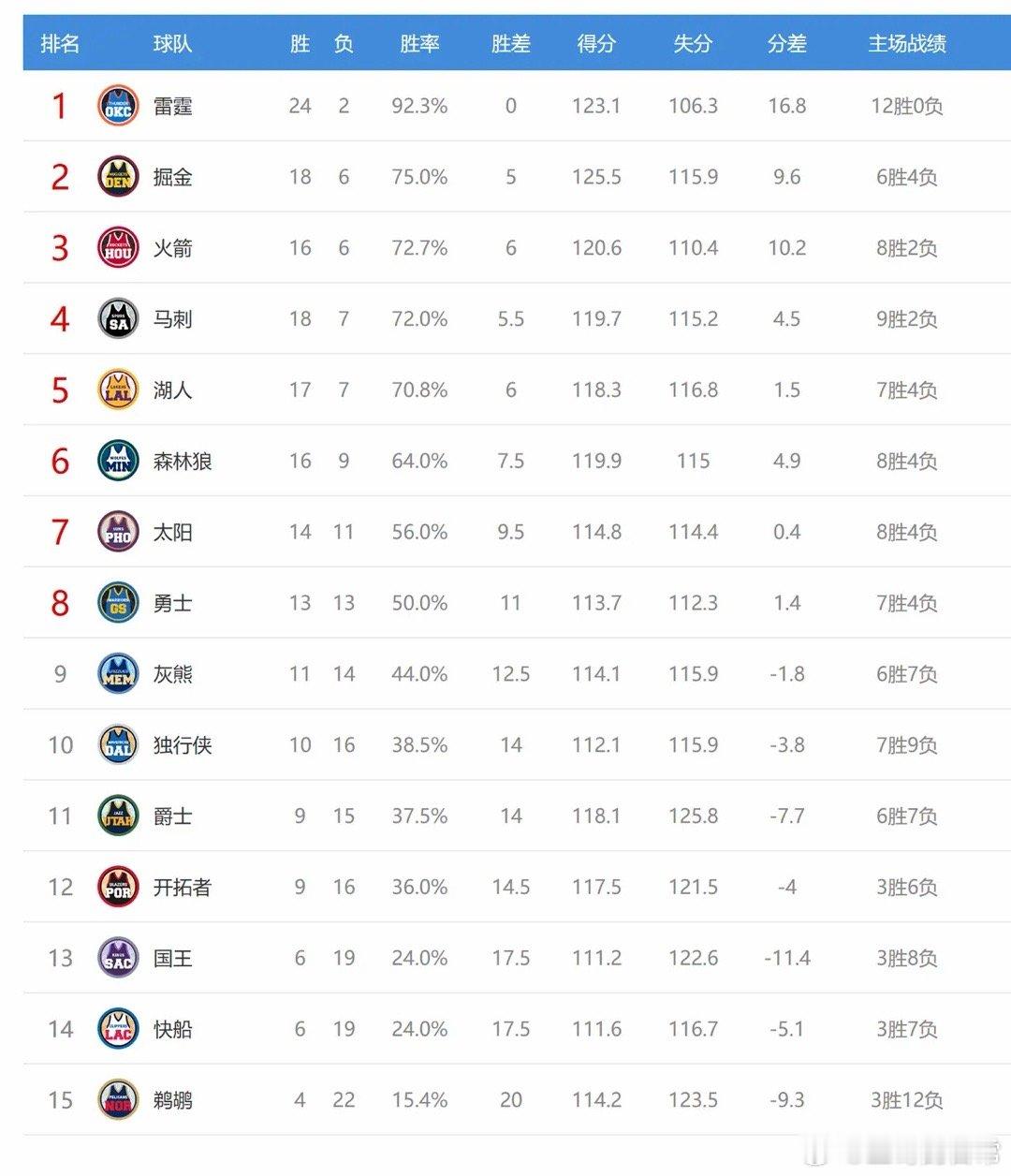 北京时间2025年12月14日,今日NBA有2场NBA杯半决赛,在拉斯维加斯举行,NBA杯除了决赛外,其他比赛战绩算到常规赛中,今日雷霆、马刺参与其中,赛后西部排名发生了变化。雷霆vs马刺,雷霆战绩联盟第一且目前16连胜,赛季业界一致看好雷霆晋级,雷霆方面哈滕复出,以赛亚乔缺阵,马刺方面文班在缺席12场比赛后复出,他有出场时间限制,所以替补出战。首节比赛文班没有打,雷霆优势明显,一度领先16分,首节战罢领先11分。第二节文班上场,他上场后马上改变比赛走势,带领马刺把分差追到4分,随后文班下场休息,没有文班后雷霆又展现出优势,迅速把分差扩大到16分,文班重新上场后再次改变比赛走势,马刺迅速缩小分差,半场战罢雷霆领先3分。