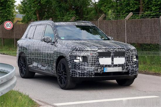 【宝马全新一代X7谍照曝光】日前,全新宝马X7最新谍照曝光,宝马的工程师正在紧张的忙碌着,期望2027年底前推出40款“新世代”车型,全新宝马X7就是其中的一款,新车将提供混动和纯电动版本,并带来富有科技感的座舱,新车将会在2027年发布。外观方面,新车延续了全新旗舰级车型标志性的分体式车灯设计,新的日行灯更加修长,与竖置双肾前格栅连接在一起,下部的大灯组采用全新的组合式设计,转向灯也融合于其中。前包围经过重新的优化,看上去更加动感。动力方面,谍照测试车展示出四出排气布局和大尺寸轮圈,可能会搭载V8发动机+48V轻混系统,此外,纯电动车型iX7的推出也得到证实,将与燃油车来自相同的架构,电动版车型功率可能达到913马力。