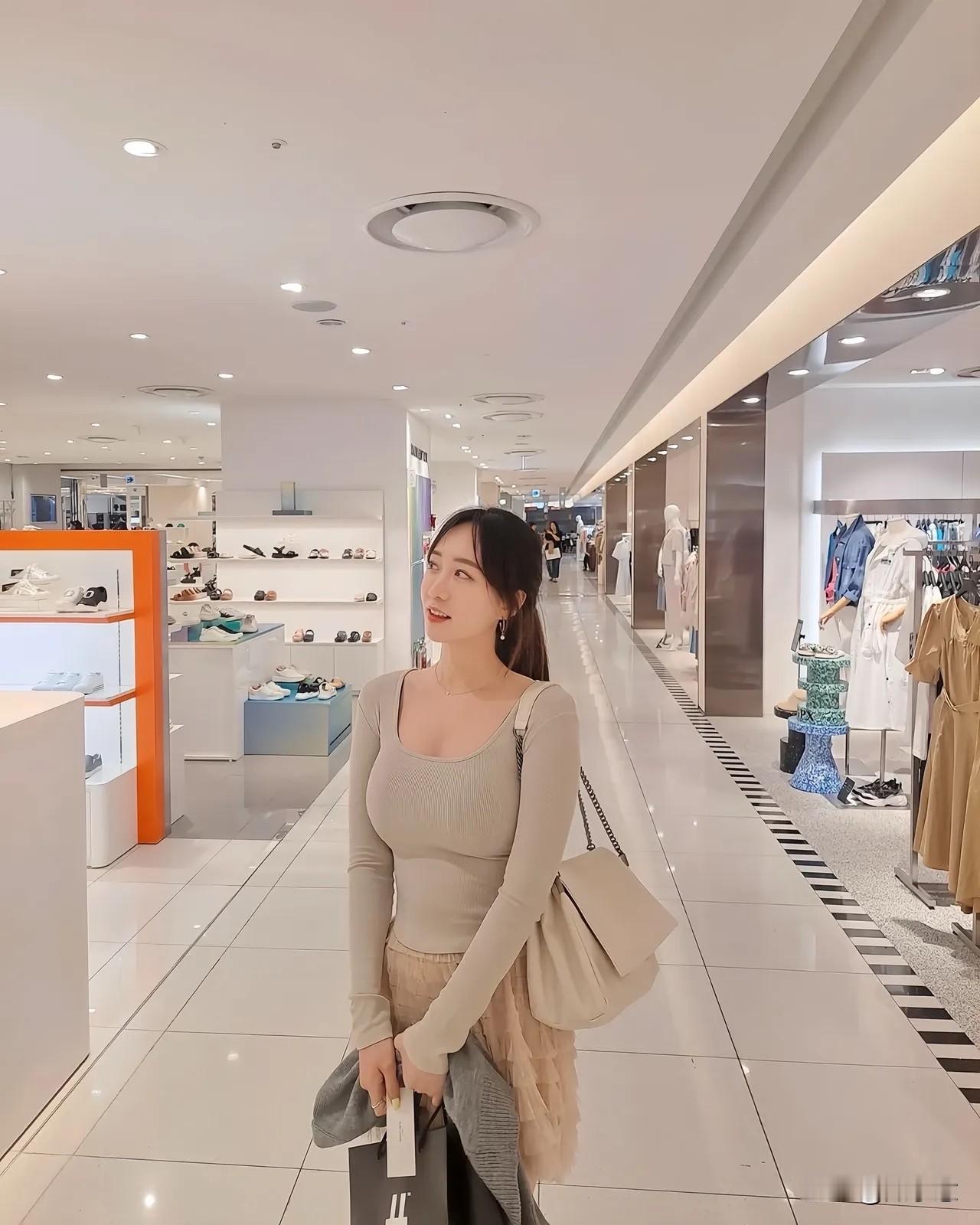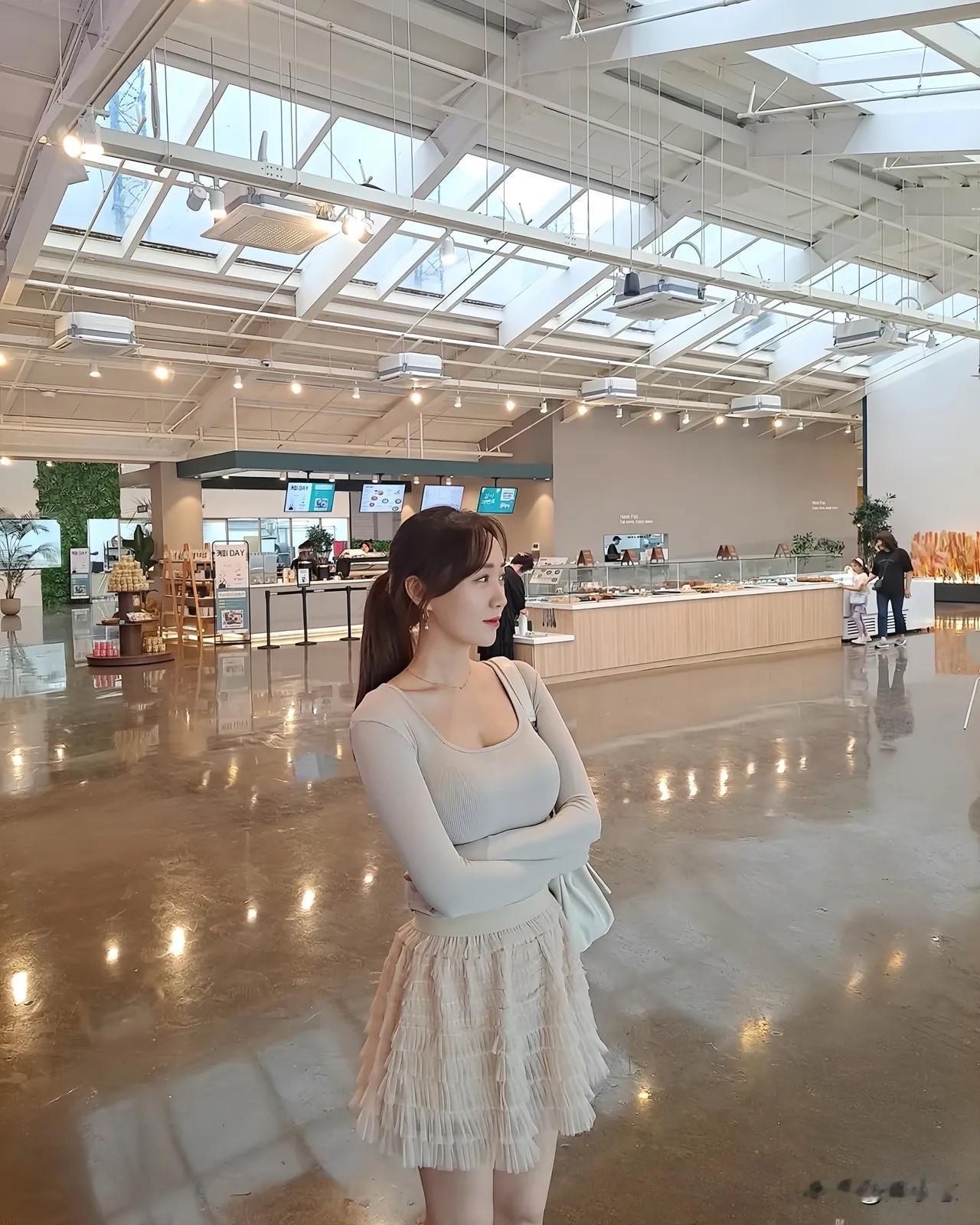 时尚少女在现代咖啡馆内,优雅地等待着。