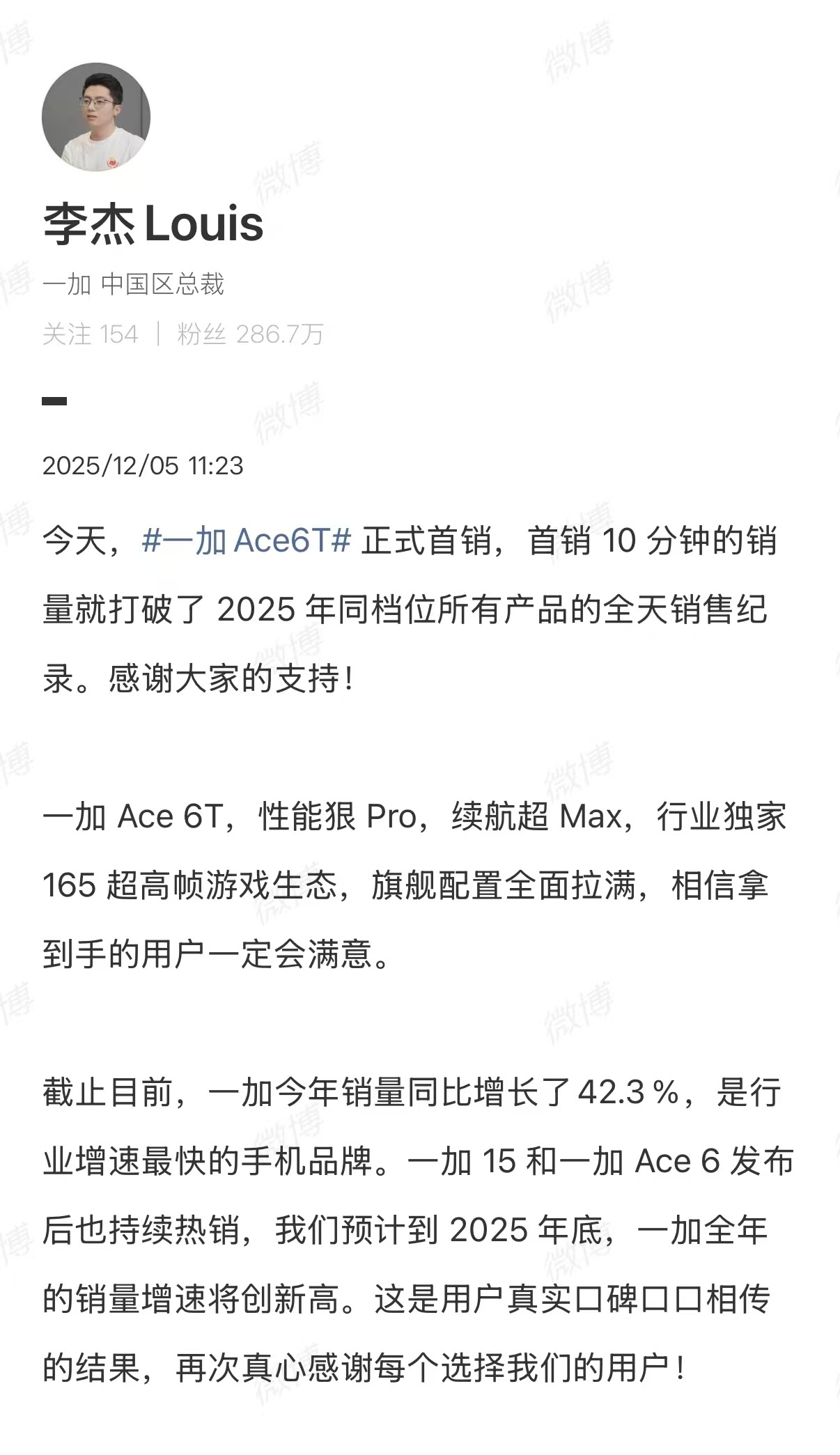 重磅!一加12周年庆上李杰Louis宣布,一加Turbo新系列即将登场,并称其强得可怕。今年一加全程领跑行业增速,一加Ace 6T首销即破纪录,新品密集落地可以说是持续兑现硬核实力。之前看站哥爆料一加新机疑似独家首发骁龙8系芯片,还有一颗是SM8735 Pro,应该说的就是Turbo系列了。一加携手高通深度联调打磨硬件级优化,能叫Turbo想必性能爆发力与续航能力双维大飞跃,直逼旗舰级体验。中端机市场或将迎来全新升级,满是惊喜的Turbo,值得期待