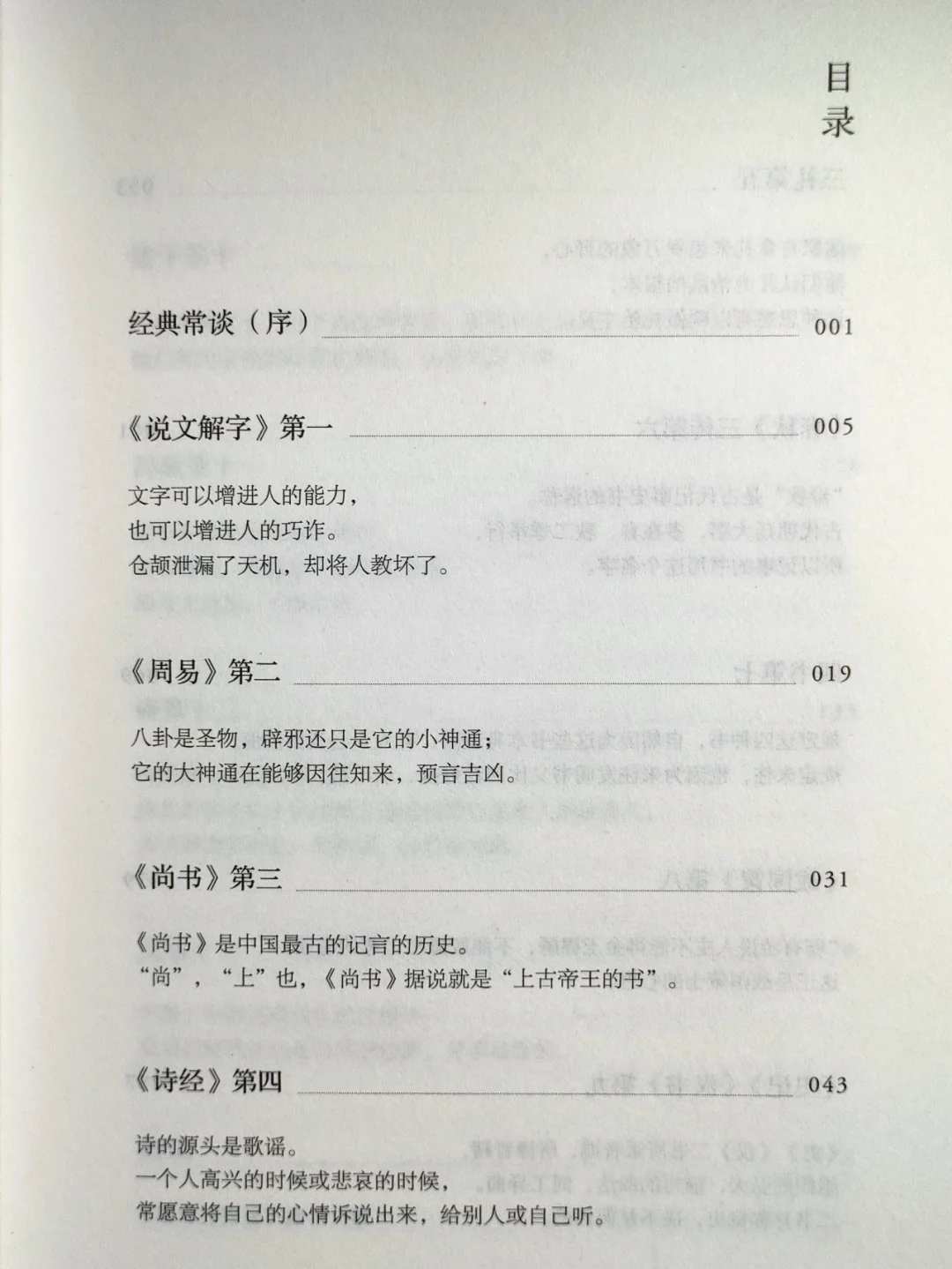 🙇朱先生倾注了许多的心血和对后学的殷殷关爱,以通俗流畅的文字,按历史发展的脉络,梳理了从仓颛造字开始到《周易》、《诗经》、《春秋》、四书五经、诗、辞、文、赋的经典内容,为读者提供通览国学精华的指南。