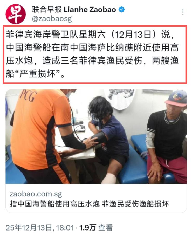 菲律宾故技重施!中国对菲律宾动手,果断开炮。菲律宾海岸警卫队12月13日以颠倒黑白、贼喊做贼、倒打一耙、恶人先告状的姿态对中国发起了一个抹黑指控:中国海警船及海上民兵船12日在南海所谓的“埃斯科达浅滩”(即中国仙宾礁)海域开水炮攻击20多艘菲律宾渔船。 仙宾礁,隐匿于南沙群岛东部浩渺海域之中,它不仅是中国长久以来坚定主张主权之所在,更是处于中国实际管辖之下的重要岛礁,宛如南海明珠,熠熠生辉。 中方在该海域的执法活动,是基于对自身主权的维护,而菲律宾所称的“埃斯科达浅滩”,实为同一地理目标的另称。 此类“命名争议”本身,即反映出南海问题上长期存在的领土与海洋权益主张重叠现象。 此次菲方特别强调“20多艘渔船”这一数字,实则折射出南海渔业资源面临的现实压力。 近年来,由于近海渔业资源减少,部分菲律宾渔船向争议海域移动的趋势明显,这客观上增加了海上接触与摩擦的几率。 菲方选择在事件发生后迅速发起舆论攻势,也与其国内政治及对外战略调整密切相关。 小马科斯政府上台后,菲律宾明显加强了与美国的防务合作,新增军事基地选址多面向南海与台海方向,使得南海议题更易被“安全化”与“国际化”。 水炮作为各国海警常用的非致命执法装备,其作用在于通过水压迫使目标船只改变航向或停止前进,避免直接碰撞与人员伤亡。 中国海警在仙宾礁海域使用水炮,符合国际通行的海上执法实践。 从冲突管控角度看,这类手段实际上在防止事态升级为军事冲突的同时,也给予了各方一定的反应空间与台阶。 值得关注的是,南海海上对峙已逐渐形成某种“标准化剧本”:一方试图接近或进入争议水域,另一方采取非致命手段拦截,随后前者进行外交抗议与舆论渲染。 这种模式既维持了冲突的“可控性”,也满足了各方在国内政治与对外宣传上的需要,但长期来看,这种“事件循环”可能固化互不信任,阻碍实质对话。 在这种复杂背景下,单一事件很容易被纳入更宏大的叙事框架,成为各方表达立场、争取支持的“素材”。 这也提醒我们,看待南海问题需超越个案细节,关注其背后的结构性与长期性因素。 欲打破南海问题之循环困局,或可自以下数方面发力: 强化危机沟通机制势在必行,各方需保障在海上事件发生后,即刻借助现有渠道开展及时交流,澄清事实真相,如此方能有效规避误判,防止舆论不当引导。 推进务实合作势在必行,尽管主权问题存有分歧,但在海洋环保、渔业资源管理、海上搜救及打击犯罪等领域,合作空间颇为广阔,此类功能性合作,能有效积累双方互信。 维护对话进程十分关键,“南海行为准则”磋商虽推进迟缓,但它是当下包容性最强的多边对话平台,各方需秉持耐心与务实之态,全力推动其收获实质性进展。 淡化第三方干扰:区域问题最终需要区域内国家共同解决,过度依赖或引入外部势力,往往使问题进一步复杂化,无助于长期稳定。 此次“水炮事件”再次凸显了南海问题中“叙事对抗”的困境,各方迅速进入既定角色,通过选择性陈述与情绪化表达,将复杂现实简化为二元对立的故事。 这种叙事循环虽在短期内可能带来舆论关注或政治筹码,但长期来看,它会侵蚀对话基础,使任何一方都更难做出妥协或创新思考。 南海的真正出路,或许不在于“谁赢谁输”,而在于能否建立一种可持续的共存与管理模式。 这需要各方: 正视多元利益的存在:南海涉及主权、安全、资源、航运、民生等多重利益,单一视角无法涵盖全部现实。 区分争议的不同层次:并非所有问题都需要立即解决,也并非所有合作都需以主权共识为前提。 关注人的维度:无论国籍,依赖南海谋生的渔民、希望通过海域和平获得发展的民众,他们的安全与福祉应成为决策的重要考量。 培养长期主义视角:南海问题历经数十年,其解决也必将是一个长期过程,耐心理性、持续积累小步进展,比动辄追求“突破”更可能实现实质改善。 海浪不息,争议常在,但人类的智慧,恰恰在于在风浪中寻找平衡,在分歧中搭建桥梁。 南海的未来,最终将取决于沿岸国家是选择对抗的循环,还是共同探索一条超越争议、共享和平的新航路,这条路或许漫长,但值得每一步扎实的前行。