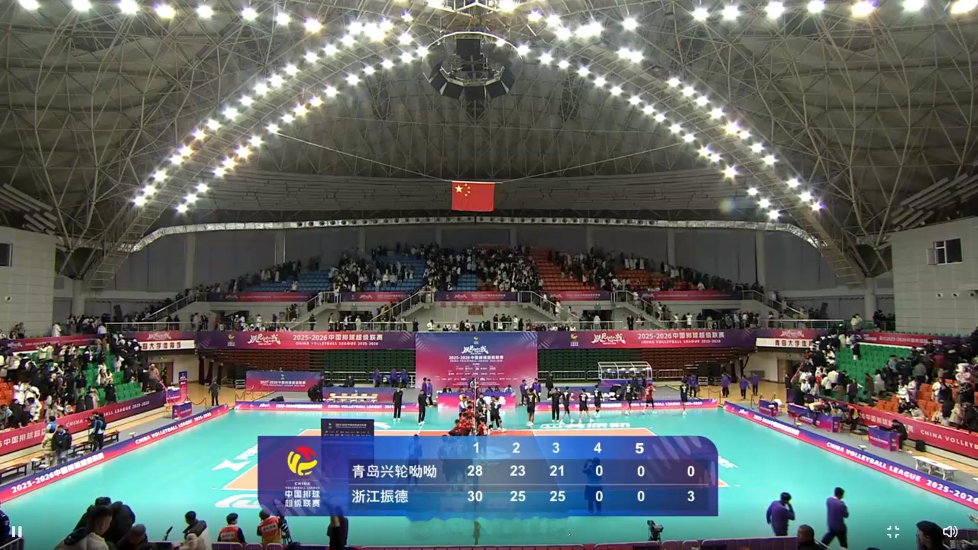 【浙江男排新赛季开门红】北京时间14日晚上,山东省青岛市青岛大学体育馆,2025-2026中国男排超级联赛 A级常规赛第1轮,浙江振德在客场以3-0(30-28, 25-23, 25-21)完胜山东青岛兴轮呦呦,取得新赛季的开门红。