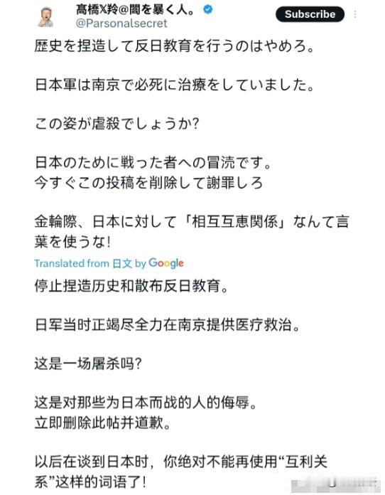 在我们举行南京大屠杀公祭之际,12月13日,日本右翼分子高桥羚阁表示,请停止“捏造”历史、停止开展反日教育!日军当时在南京“拼尽全力”救治民众。这副模样,能叫大屠杀吗?这是对为日本而战的先辈们的亵渎!立刻删除这条帖子并道歉!中国永远别再对日本提什么“互利共赢关系”! 很显然,让我们确实没想到的是,日本国内确实还有人竟然公开否认南京大屠杀的存在。这些右翼分子还恬不知耻的表示,日军当时在南京“拼尽全力”救治民众。 那我们倒是想问,为什么在中国的土地上会出现日军呢?那为什么后面有东京大审判呢?日本人难道忘记了美国为什么现在驻军在日本吗? 1937年日本发动全面侵华战争,一路烧杀抢掠推进到南京,12月13日南京沦陷,日军进城的目的从来不是解放或者救助,而是为了实现其吞并中国、称霸亚洲的野心,这是铁打的历史事实,有日军当时的作战指令、士兵日记和大量第三方记录为证。 就像日军士兵小林四郎在1937年12月14日的日记里写的,他们冲进南京安全区清查“可疑分子”,几百名手无寸铁的难民被押到玄武门用机枪扫射,连50米外的日军身上都溅满了鲜血,这哪是救治的架势,分明是屠杀的做派。 而30万遇难者数字,可不是中国随口编的,远东国际军事法庭判决书明确认定,日军占领南京最初六周内,屠杀的平民和战俘就超过20万人,而且这还没算上被抛尸长江、焚尸灭迹的人数;南京审判战犯军事法庭在谷寿夫的判决书中更是精准统计,集体屠杀有28案共19万余人,零散屠杀经慈善机构收埋的尸体有15万余具,加起来就是30万以上的遇难者总数光明网。 当时南京的红十字会、崇善堂、红十字会等慈善团体,都留下了详细的埋尸记录,比如红十字会不到半年就埋了4.3万多具尸体,这些记录至今还保存在南京市档案馆里,2015年《南京大屠杀档案》还被联合国教科文组织列入《世界记忆名录》,得到了国际社会的公认,总不能说联合国也跟着“捏造”历史吧。 要是日军真在救治民众,那这些慈善团体何必冒着生命危险去收埋遍地的尸体,难道是闲得没事干给自己找活? 东京大审判可不是中国单方面搞的“报复”,而是国际社会对日本军国主义罪行的公正裁决。 这场审判开了817次庭,留下了48412页审判记录,听取了400多位证人的证词,最终拿出了1212页的判决书,认定了日军的反和平罪、反人道罪和战争罪,东条英机、松井石根等7名甲级战犯被判处绞刑,16人被判无期徒刑。 要是日军真的在南京“救治民众”,那这些战犯凭什么被定罪?难不成是国际法官们串通一气冤枉他们?高桥羚阁说这是对日本先辈的亵渎,可他口中的先辈,是双手沾满中国人民鲜血的战犯,是违反国际法和人道主义的刽子手,对他们的审判不是亵渎,是正义的伸张。 美国为什么会驻军日本,这事儿和日本二战战败的结局直接挂钩。1945年日本无条件投降后,美国以占领军的身份进驻日本,最初目的是解除日本武装、防止军国主义复活,后来随着冷战格局形成,又通过《日美安保条约》将驻军合法化。 说白了,美国驻军是日本作为二战战败国的“后遗症”,是对其侵略历史的一种约束。要是日本当年真的是“正义之师”,没发动侵略战争,没犯下南京大屠杀这样的滔天罪行,又怎么会落得战败被占领、主权受限的下场?高桥羚阁一边否认侵略历史,一边又享受着美军驻军带来的所谓“安全”,这本身就是一种自相矛盾的滑稽。 高桥还要求中国别再提互利共赢,仿佛日本才是受委屈的一方。要知道,中国一直秉持着以史为鉴、面向未来的态度,愿意和日本发展正常的双边关系,但前提是日本必须正视历史、承认罪行。 可这些右翼分子倒好,不仅不反思先辈的暴行,还反过来歪曲历史、抹黑中国,这种做法既伤害了中国人民的感情,也堵死了两国互利共赢的道路。毕竟没有哪个国家会和一个连历史都不敢承认的国家真心实意谈合作,就像没人会相信一个把屠刀说成手术刀的人有诚意讲和平一样。