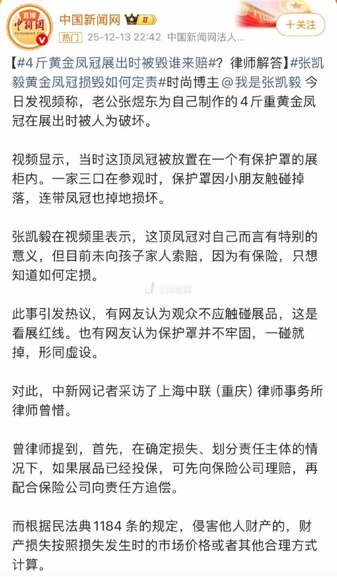 4斤黄金凤冠被毁业内称重做20万起 本来以为又是熊孩子的常规操作,点开视频我人都傻了,哈口气 + 手指一戳....以后这种展还是弄些警戒线吧... 4斤黄金凤冠展出被毁家长该负责吗