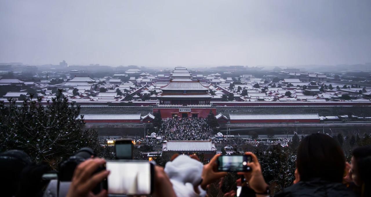 从景山公园眺望前方雪景中的故宫博物院,真的很美!故宫整体建筑也非常的雄伟壮观!从永乐年间开始修建的故宫,历经沧桑,六百多年弹指一挥间。 瑞雪兆丰年,盛世华章,千里冰封,万里雪飘。冬季的紫禁城,庄重肃穆,却又不失大气婉约。