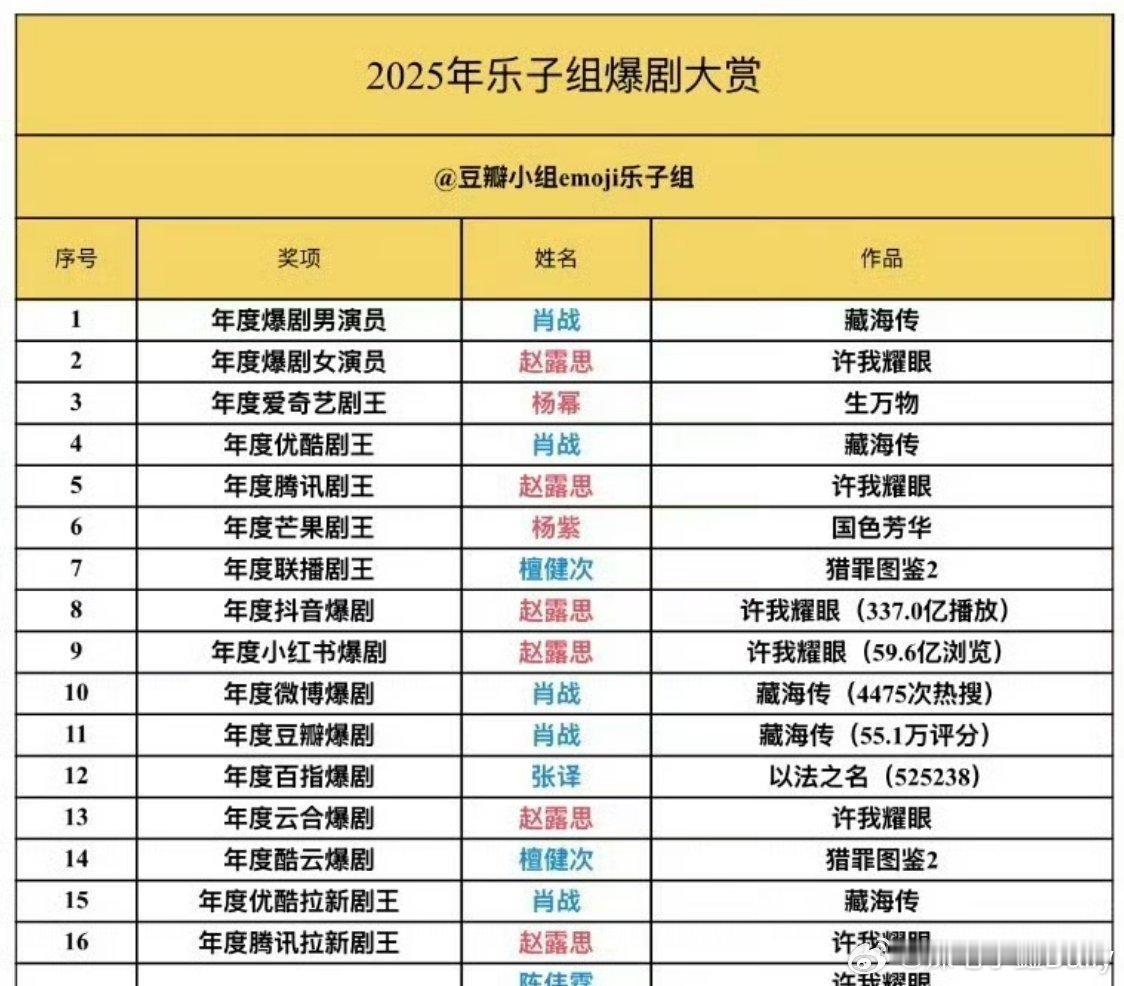 瓣人自制2025年爆剧大赏,一眼下来被《许我耀眼》和《赵露思》的名字刷屏了!