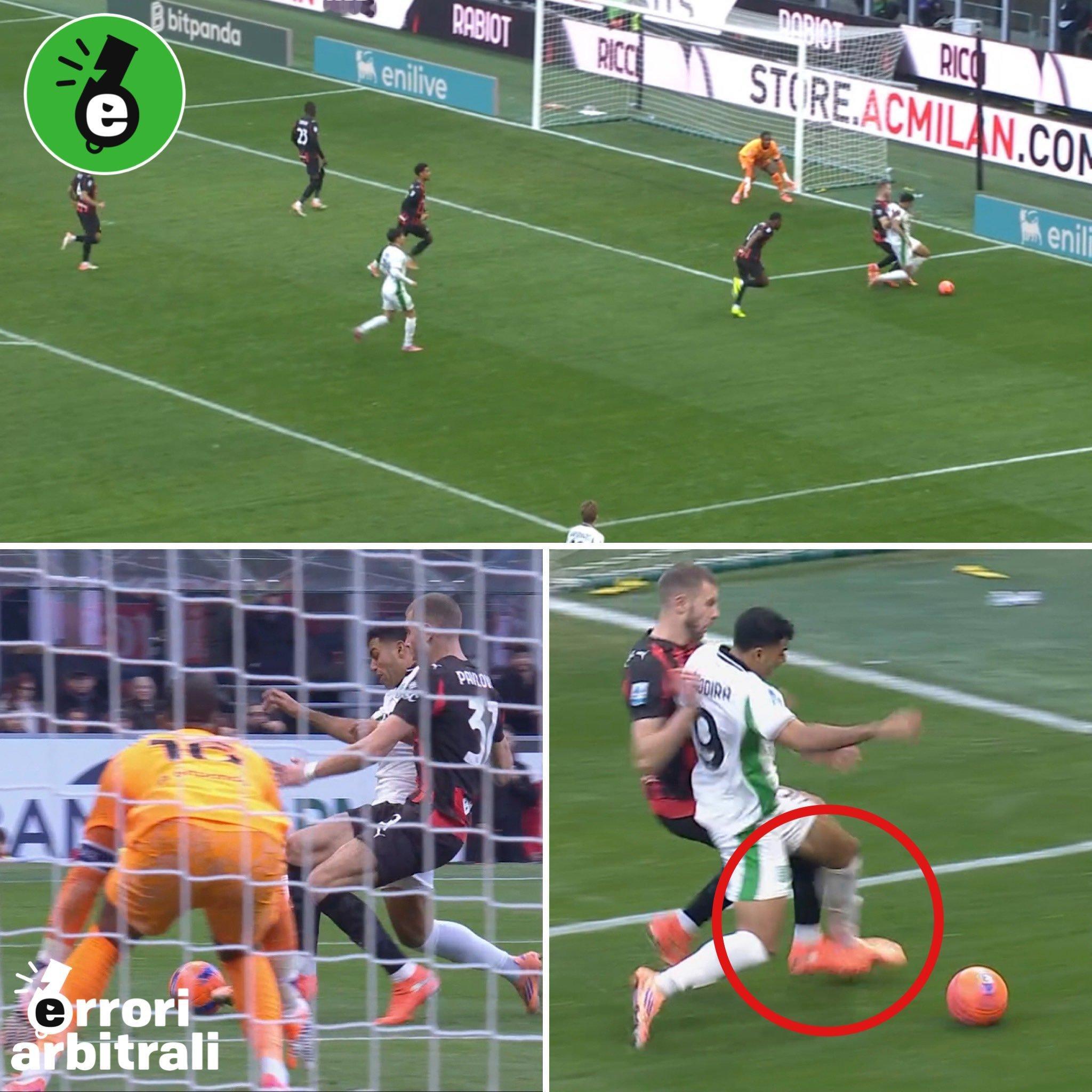 【判罚解读AC米兰2比2萨索洛】国外知名判罚博主表达。第58分钟,普利西奇的