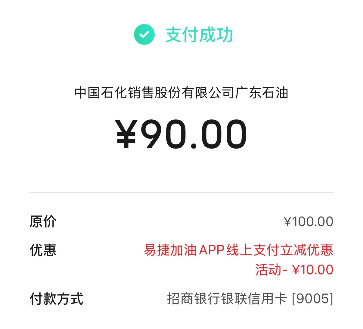 云闪付广东中石化满100-10,不用领,直接用云闪付app就可以满减,10块也是