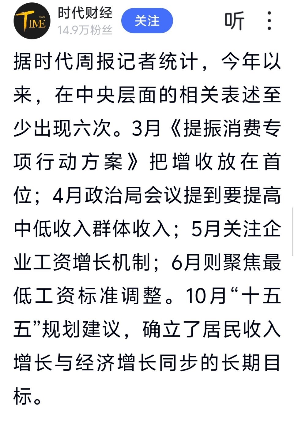时代财经: 中央再提增加收入,年内六次提“涨工资”!