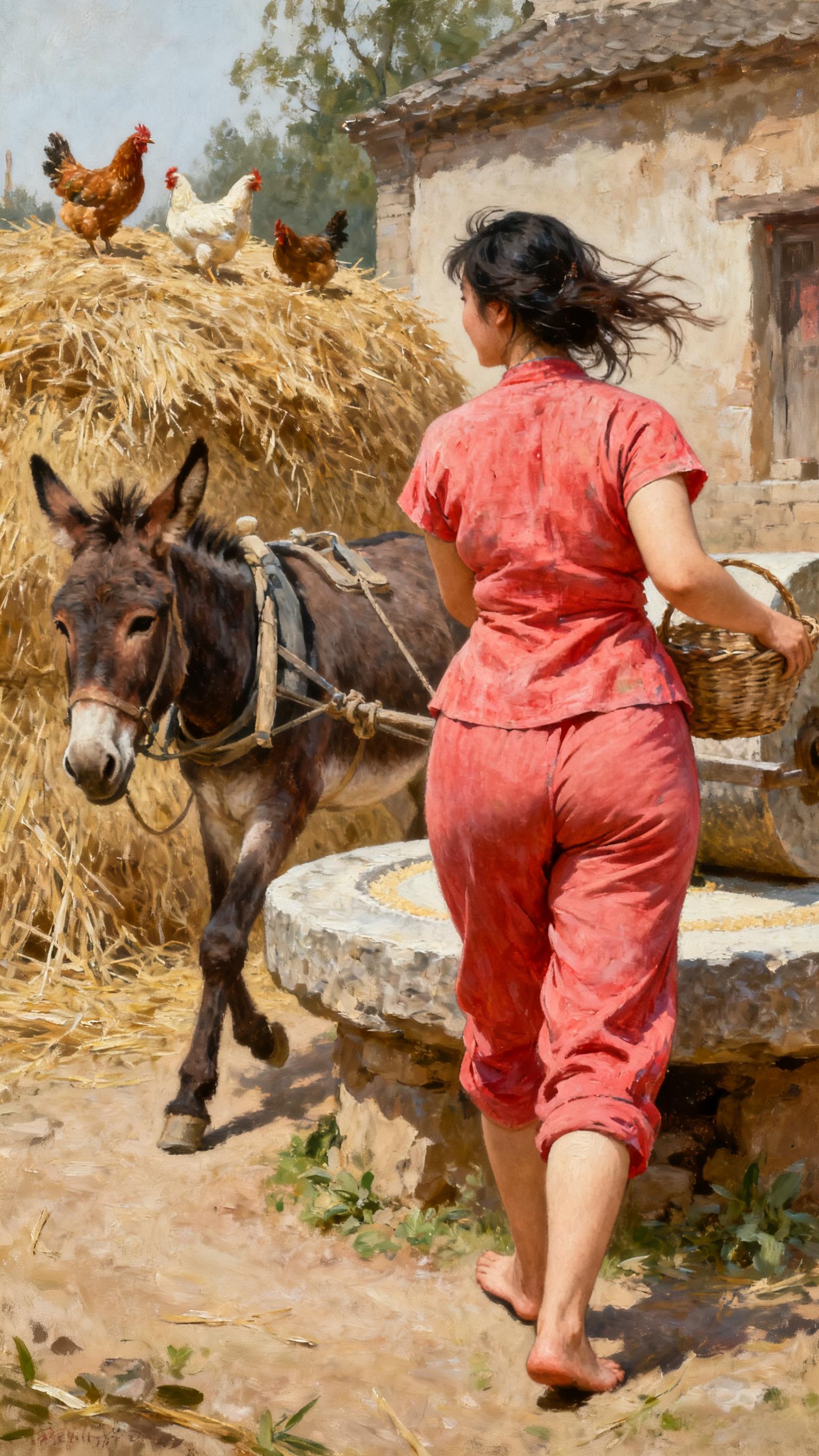 乡土气息 散养鸡 石磨