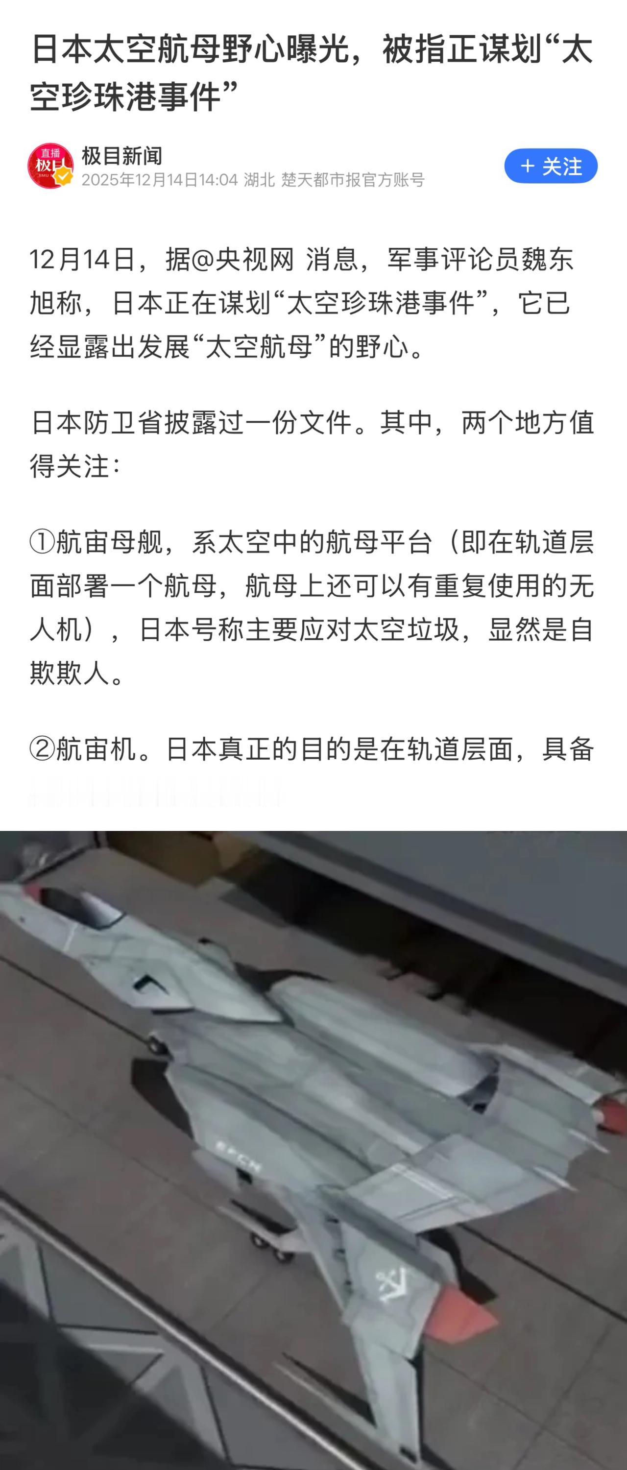 专家警示:日本正积极谋划“太空珍珠港”,其“太空航母”的发展野心已不容忽视。