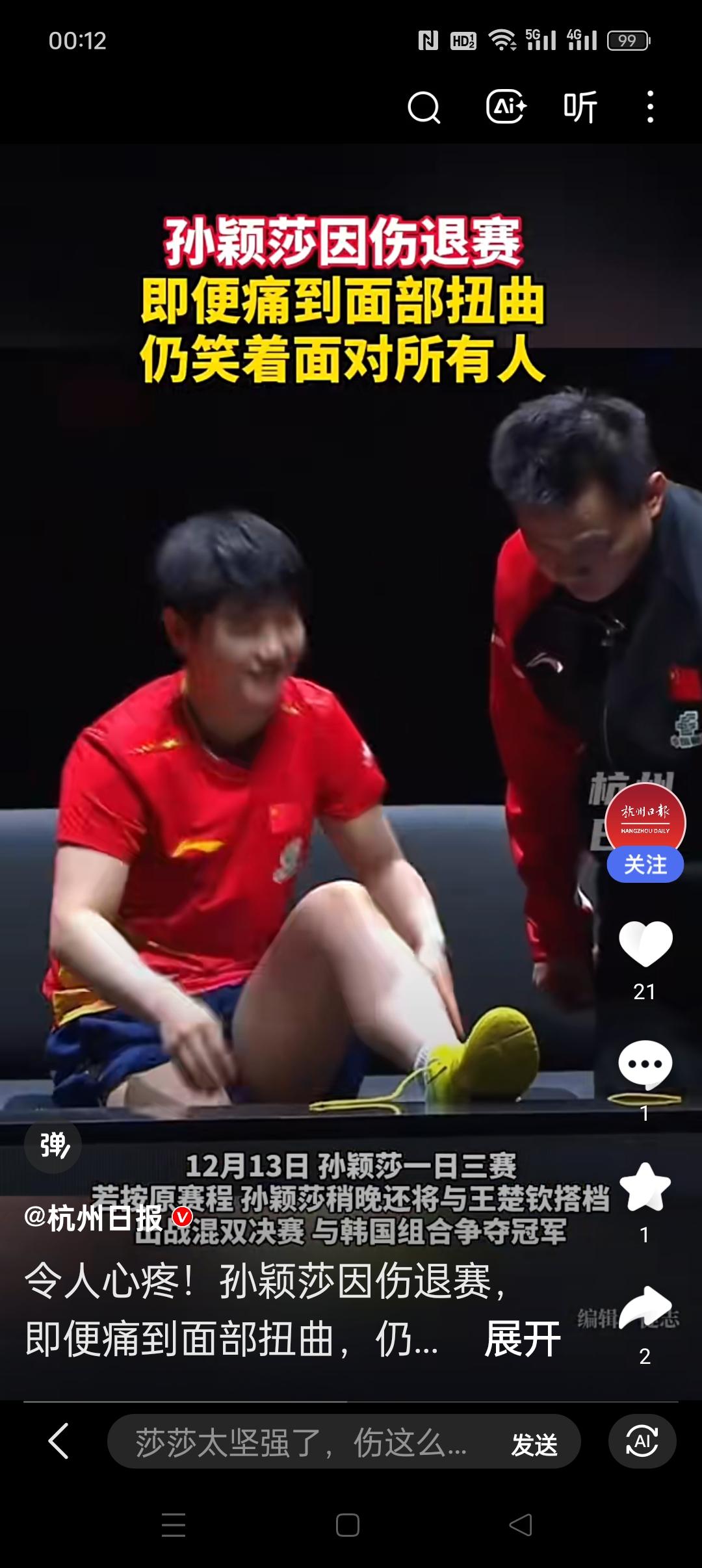 莎莎爸妈连夜赶到北京, 等候莎莎返回北京疗伤, 可怜天下父母心, 子女长大了, 成了最耀眼的那颗星, 在父母眼里都是孩子。 看着莎莎一场接一场的比赛,既高兴取得成绩, 又担心她的身体, 长期透支容易扭伤, 伤筋动骨一百天, 脚崴了不知伤成咋样? 如果伤了骨头, 得要三四个月养伤。 看着光环绕身,其实是搏命换来的。 莎莎太棒了!