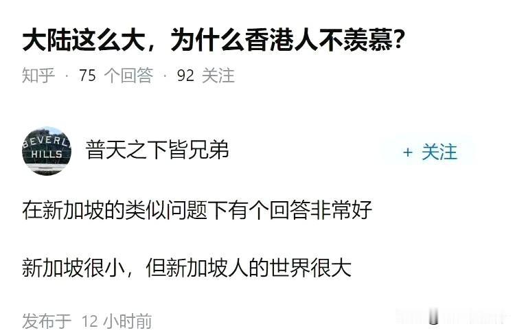 哎,真是的,我们就只能说:中国很大,中国人的世界更大。没办法,就是这么优越,藏都藏不住,真烦呐(摊手)[大笑] 新加坡这个国家完全靠美国保护,如果美国从亚太撤了。哈哈哈哈,都不敢想新加坡的结局。 香港不羡慕大陆,是因为大陆还没有香港发达——这是很正常的事,一些人偏要拿这个说事,是居心不良。[酷拽]中国 新加坡华人群体