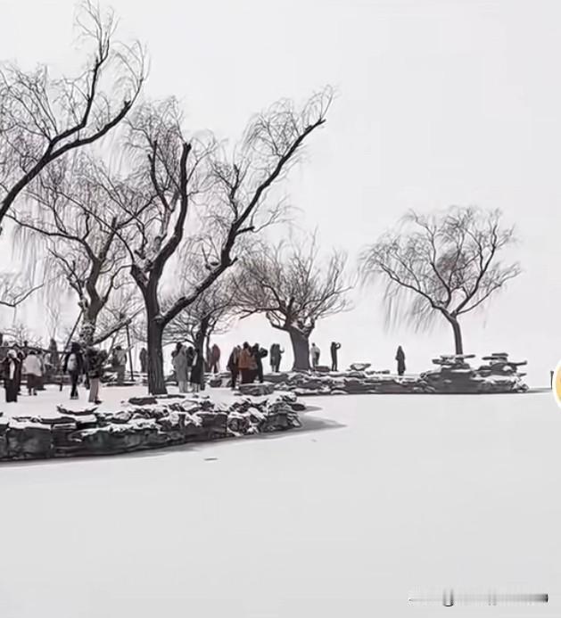 北京颐和园雪景 一梦醒来,京师喜飘瑞雪,著名的颐和园公园,宛如展开一幅水墨画画卷,让人赏心悦目。 洁白的瑞雪做底色,勾勒出简洁明了的线条,具有民族特色的亭台楼阁,以及雪中嬉戏的民众,都如同不多修饰的着墨有机组合,纵观整个画面,诗意自然,恍若天成。