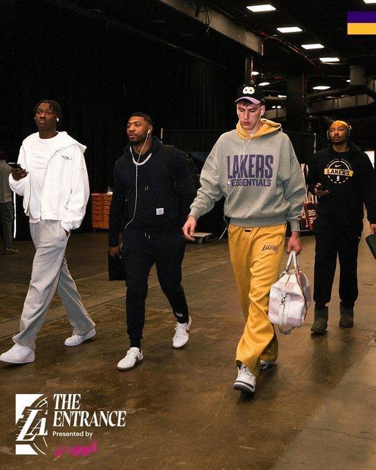 湖人球员抵达球馆。洛杉矶湖人太阳vs湖人