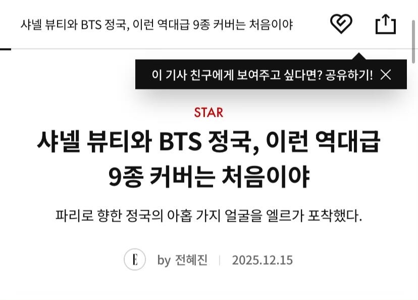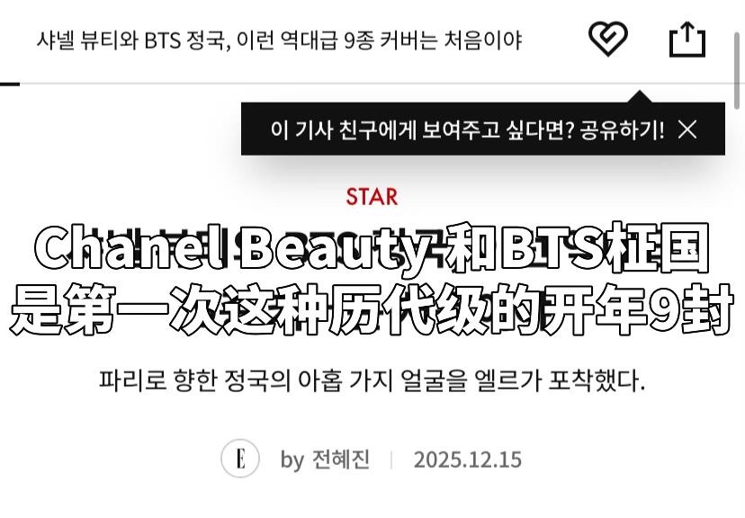 ELLE标题:“Chanel Beauty 和BTS柾国,是第一次这种历代级的开年9封” 田柾国ELLE九封