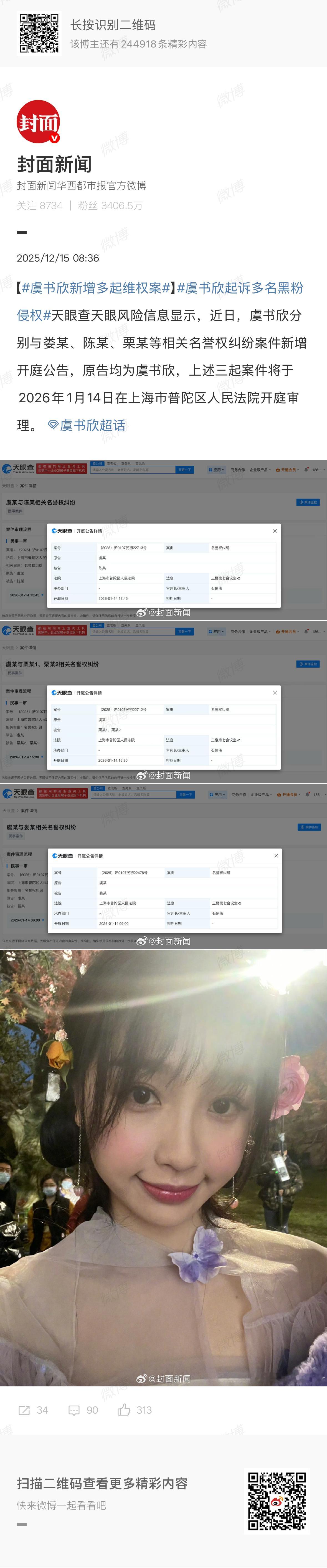 虞书欣起诉多名黑粉侵权,支持合理维权!