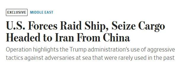 美国特种部队上个月在印度洋登上了一艘船,并查获了从……运往伊朗的军事相关部件。 该船在斯里兰卡数百英里外被拦截,船上货物被没收并销毁,之后才被允许继续航行。 这次罕见的行动旨在破坏伊朗重建其导弹和武器计划的努力。 严重怀疑是wsj的假消息,因为CCTV没有报道。