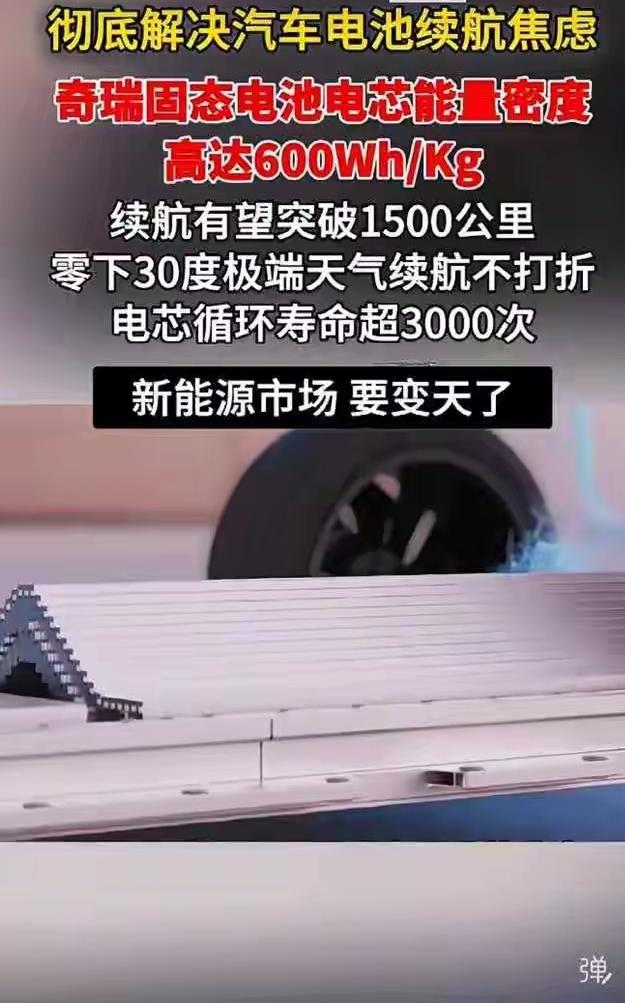 新能源圈最近太疯狂!奔驰刚完成超 1000 公里续航测试,奇瑞紧接着就在全球创新大会上甩出“王炸”。它自研的全固态电池模组,能量密度达 600Wh/kg,是传统液态锂电池的 2 - 3 倍,未来纯电车跑 1500 公里不是梦。 这固态电池靠“原位聚合固态电解质”和“富锂锰正极材料”两大技术实现突破。而且安全性也质变升级,把液态电解液换成固态电解质,从根源上杜绝起火爆炸隐患。 奇瑞这款电池切掉一角仍能正常充放电,不冒烟不起火,2026 年上车,2027 年量产。想买纯电车的,真得再等等!