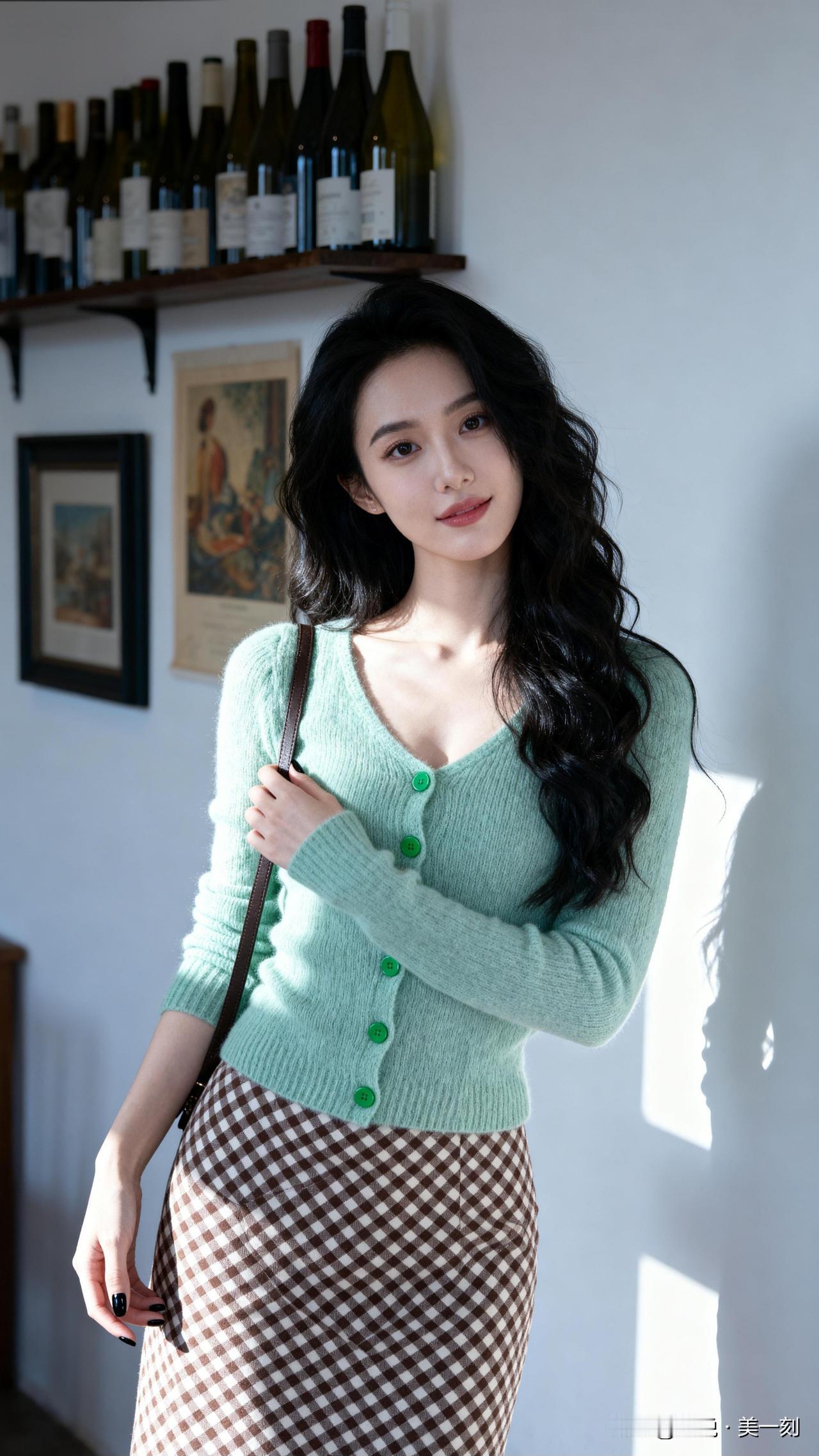 绿衫美人倚,酒香如画来。用镜头记录生活的美 复古风穿搭指南:绿毛衣+格子裙,优雅又时尚!